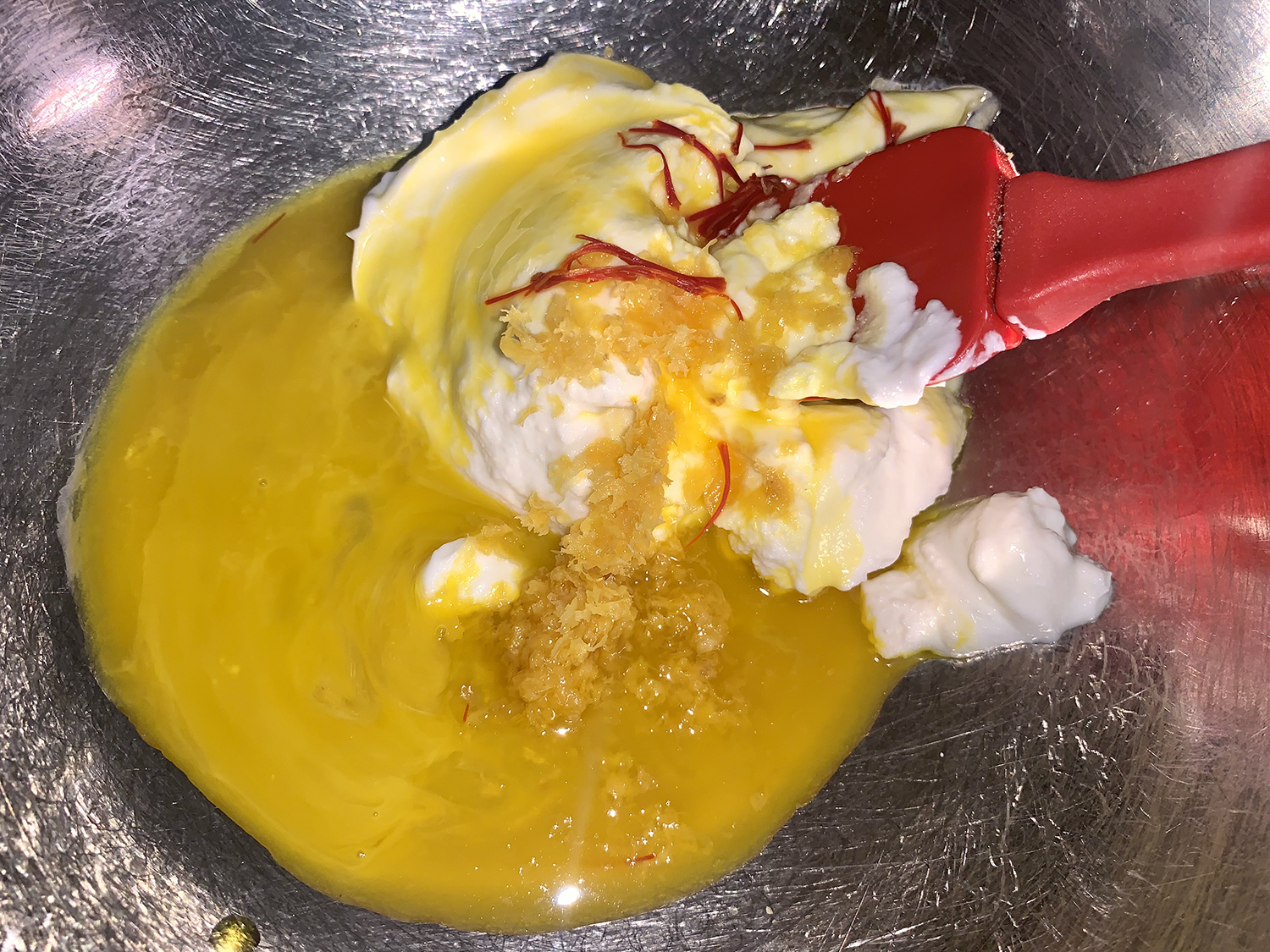 In a large saucepan, bring 2 quarts water to a boil. Meanwhile, in a large bowl, combine the yogurt, egg yolk, remaining 2 teaspoons lemon zest and remaining saffron water; whisk until well combined.