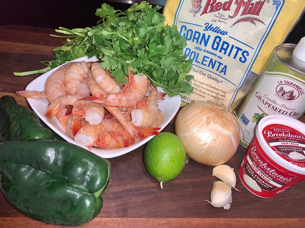 If crema isn’t available—and it wasn’t for us—sour cream works in its place. To make a more substantial meal, serve with warmed tortillas and rice and beans; over steamed rice; or as in our case, polenta cooked in shrimp stock.