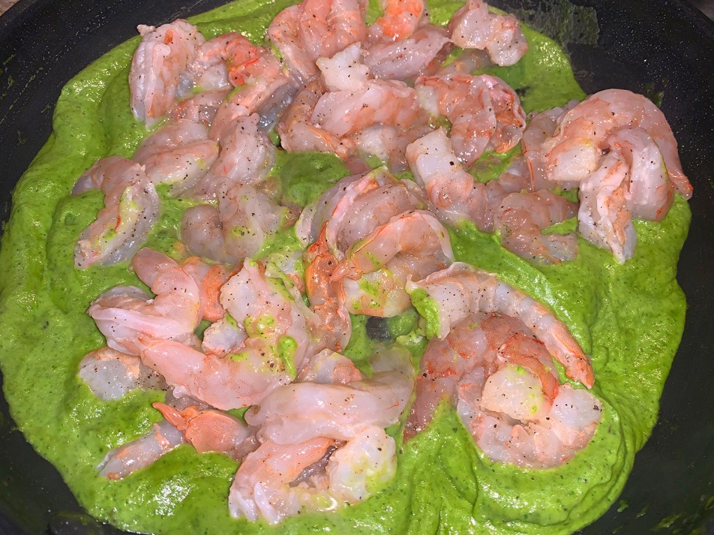 Pour the puree into the skillet and bring to a simmer over medium. Cook, stirring occasionally, until slightly thickened, 3 to 5 minutes. Add the shrimp and cook, stirring often, until opaque throughout, about 3 minutes.