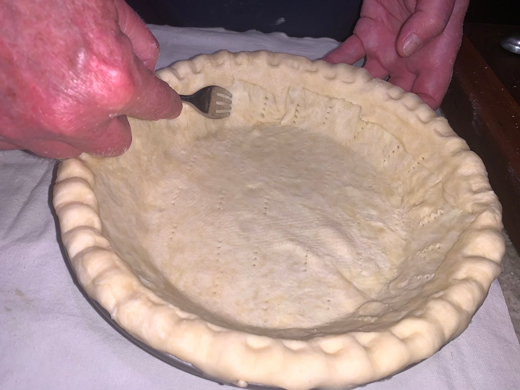 NOTE: Don’t use a metal baking pan or a ceramic pie plate. Neither will brown and crisp the bottom crust as well as glass. Also, be sure the oven rack is in the lowest position, as proximity to the heating element will assist with browning.