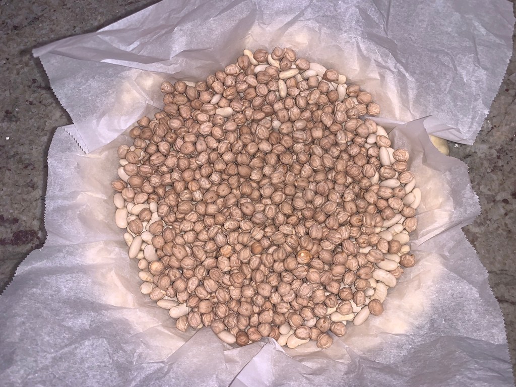 Line the shell with parchment paper and weigh it down with baking beans, dry red kidney beans, or chickpeas.