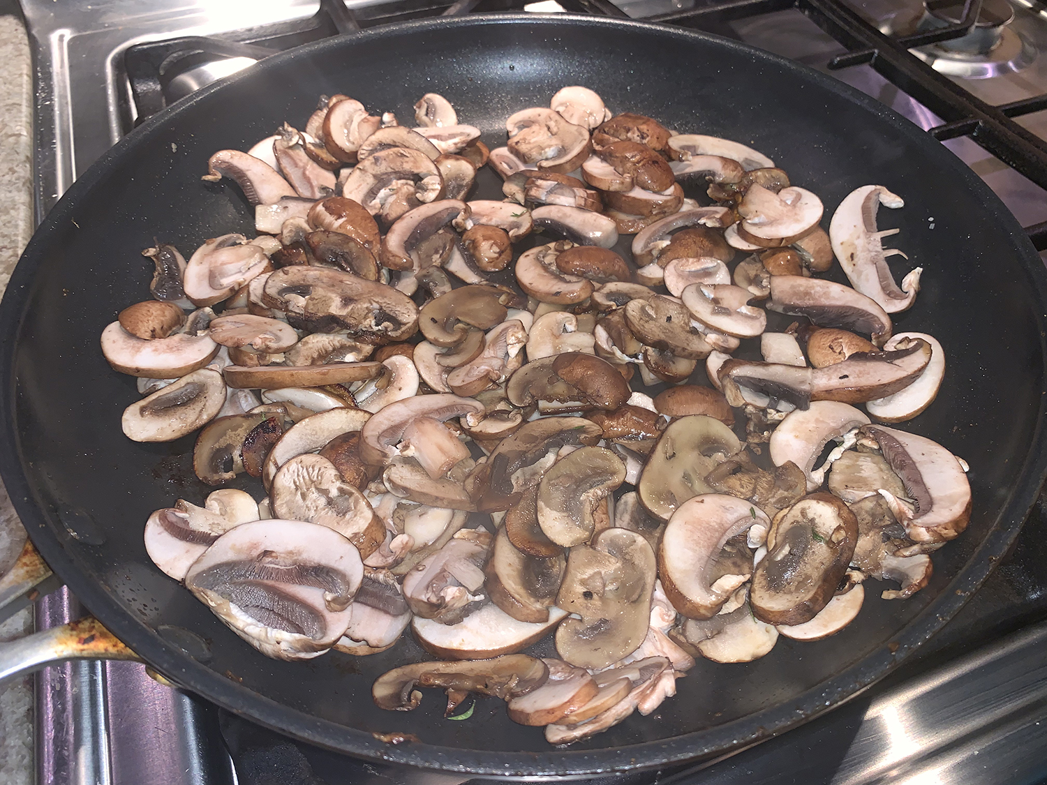 Add a tablespoon of olive oil and sauté the mushrooms in the same pan, until they are softened and cooked, about 8 minutes.