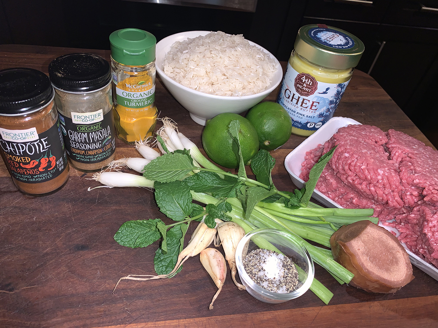 Stir the rice into the cooked lamb mixture, then drizzle with the remaining 1 tablespoon lime juice. Fold the scallions and mint into the rice, and serve immediately.