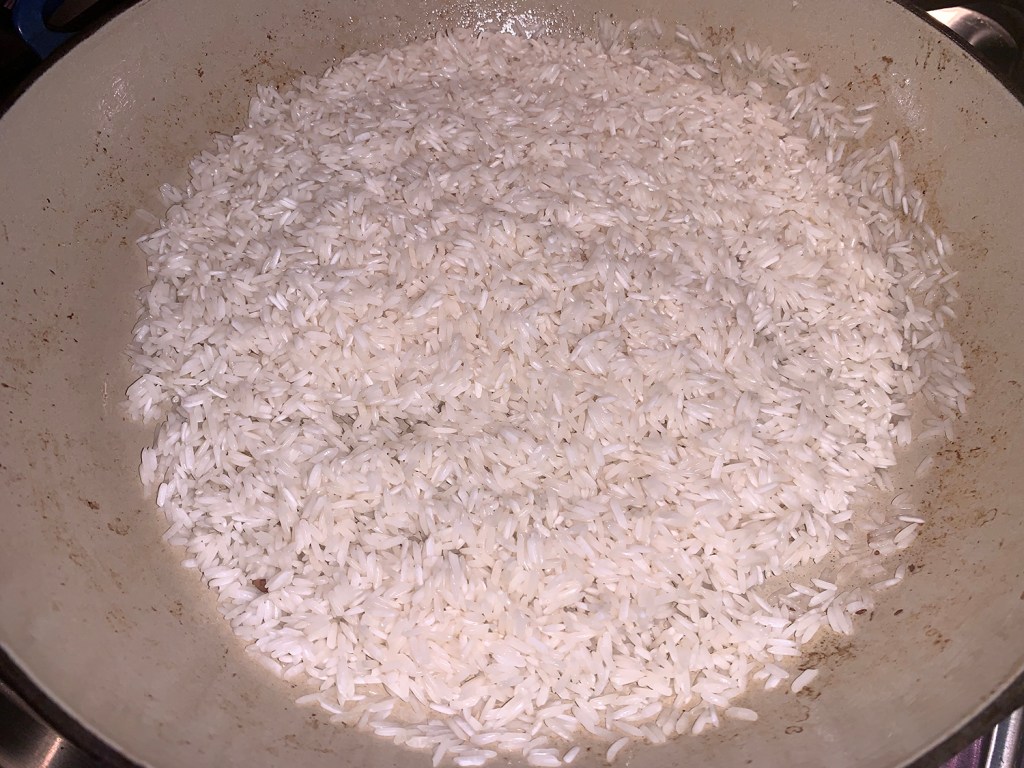 Check the rice and discard any debris. Place the rice in a fine-mesh sieve and rinse under running water until the water runs clear. Place the rice in a bowl, cover with water by 1 inch, and soak for 30 minutes.