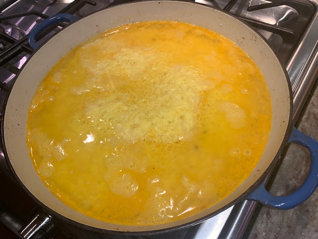 Not having a large enough pot with a fitted strainer, we omitted the strainer altogether, except at the end to drain the food into. Additionally, the amount of liquids were reduced to make sure everything would fit our smaller pot.