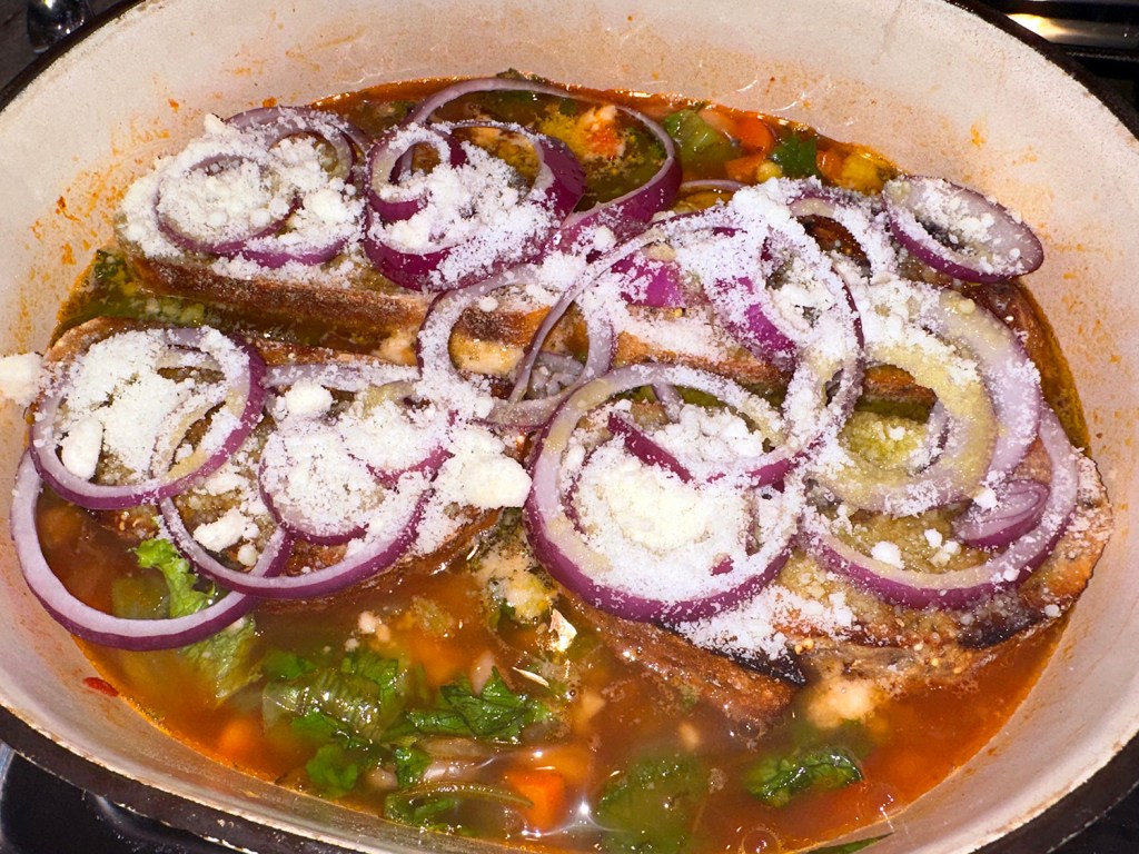 - 1 slice hearty white sandwich bread, torn into 1-inch pieces