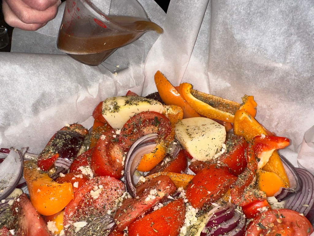 This recipe can easily be doubled to feed 4 or 5 guests. Unable to source tagliatelle (who knows why, it is usually a popular pasta), we substituted fettuccini, though pappardelle would also work.
