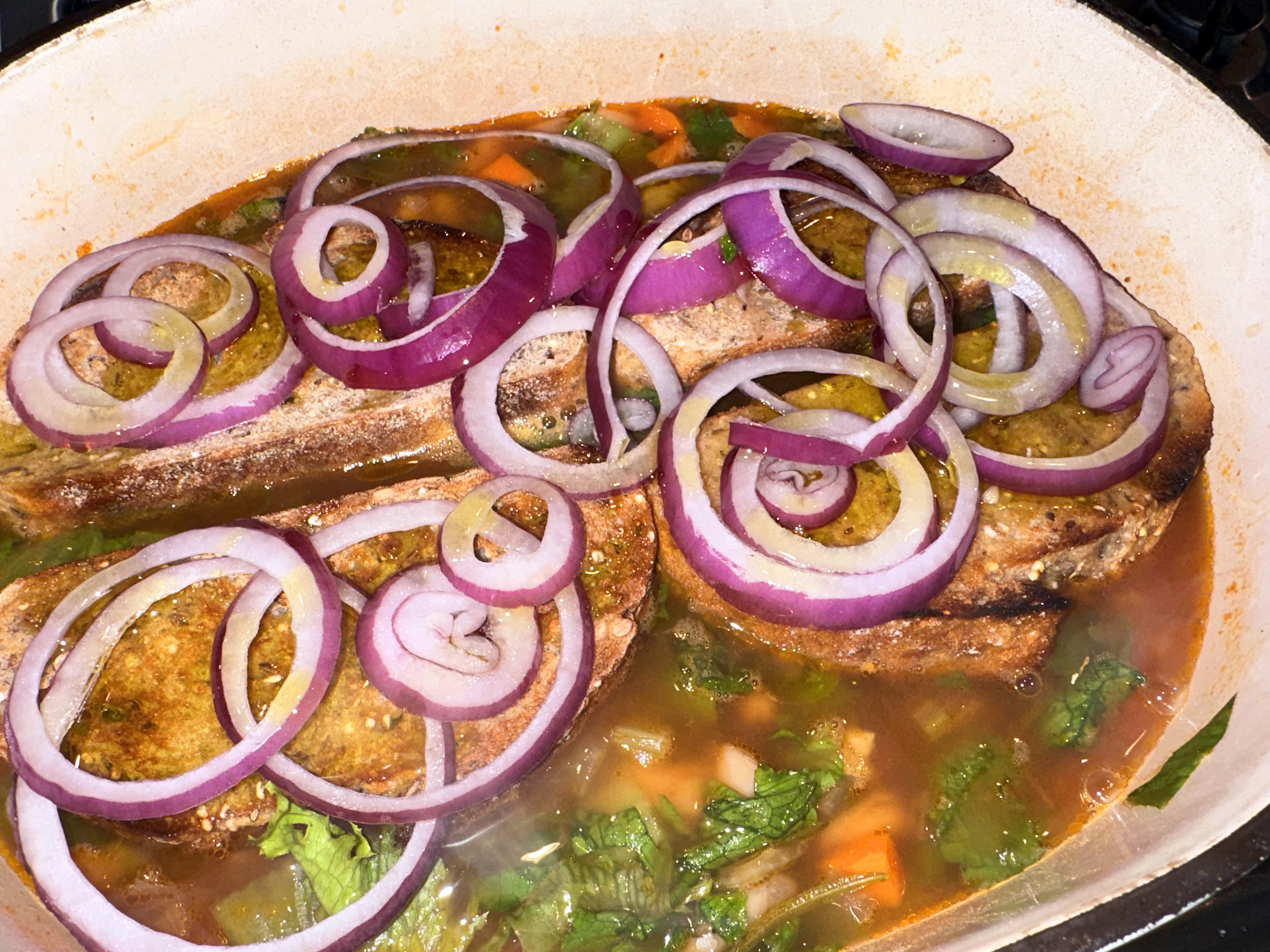 - 1 slice hearty white sandwich bread, torn into 1-inch pieces
