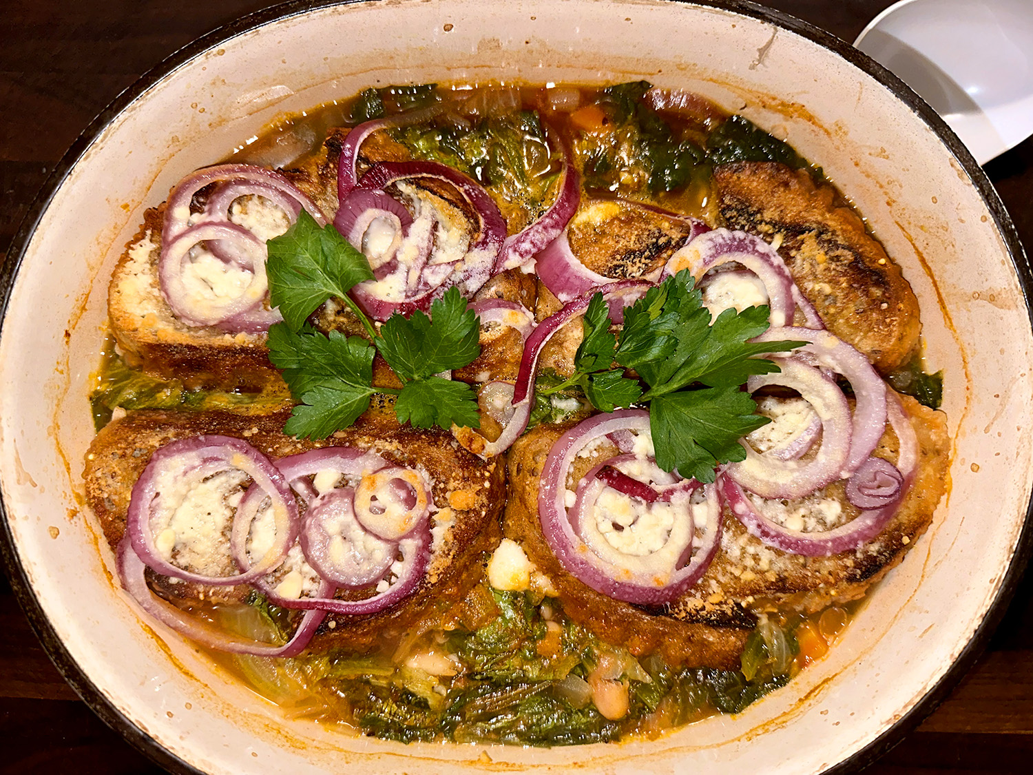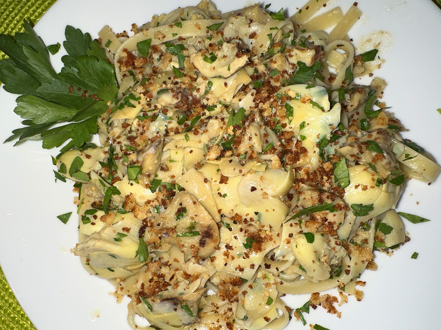 Anchovy gives the sauce savory depth without imparting a fishy taste—don’t omit it; and cream ties together the aromatics, wine, and artichoke flavor. A simple Parmesan bread-crumb topping gives the dish some savory crunch. Even though it adds more carbs, the crumb topping adds another dimension and necessary texture.