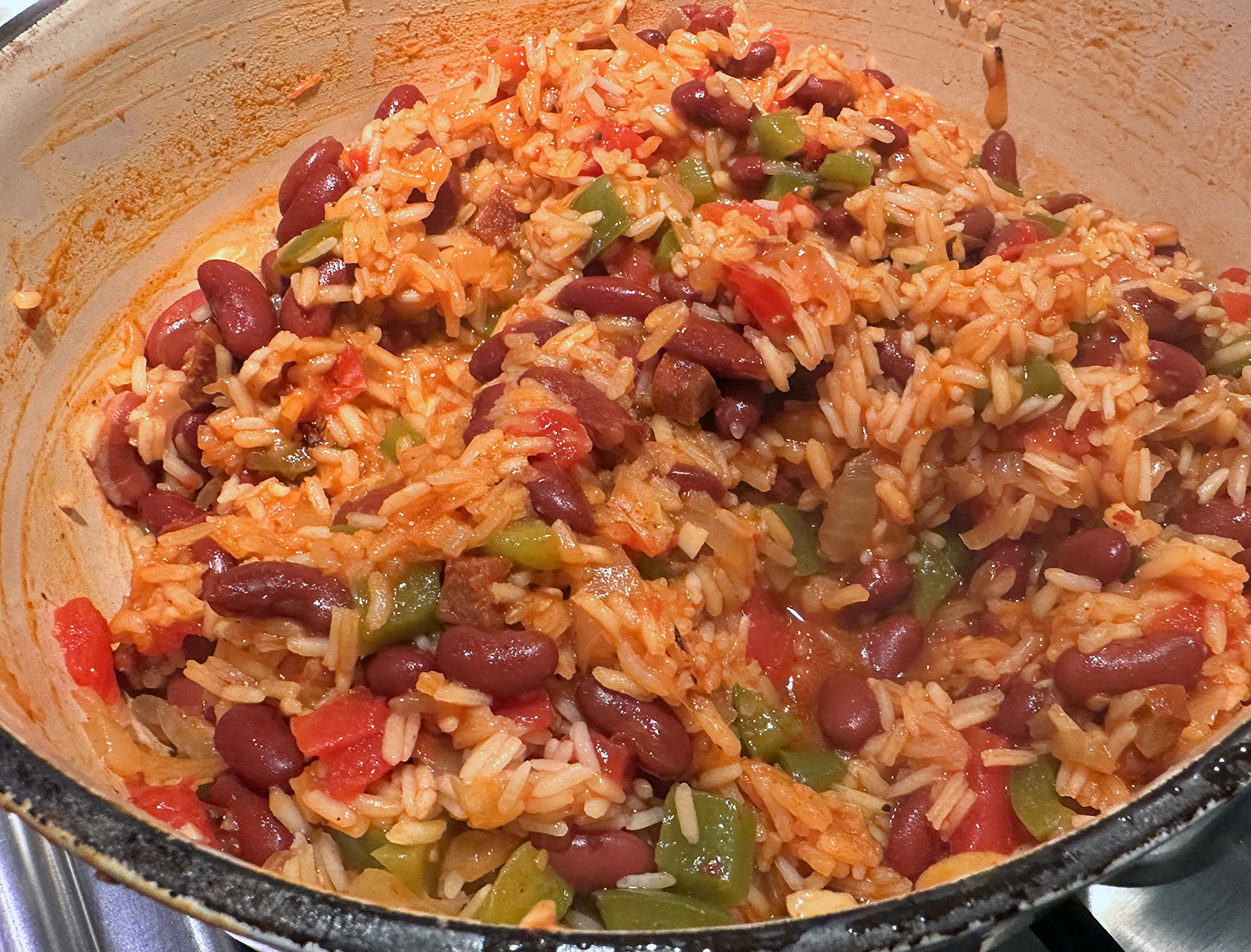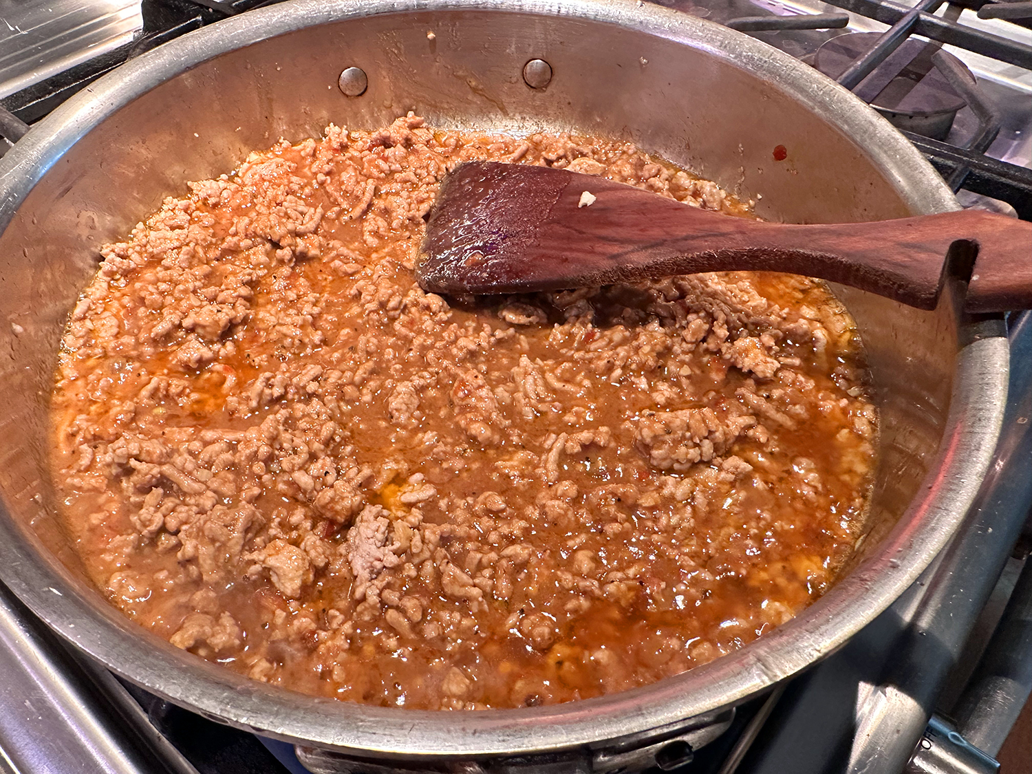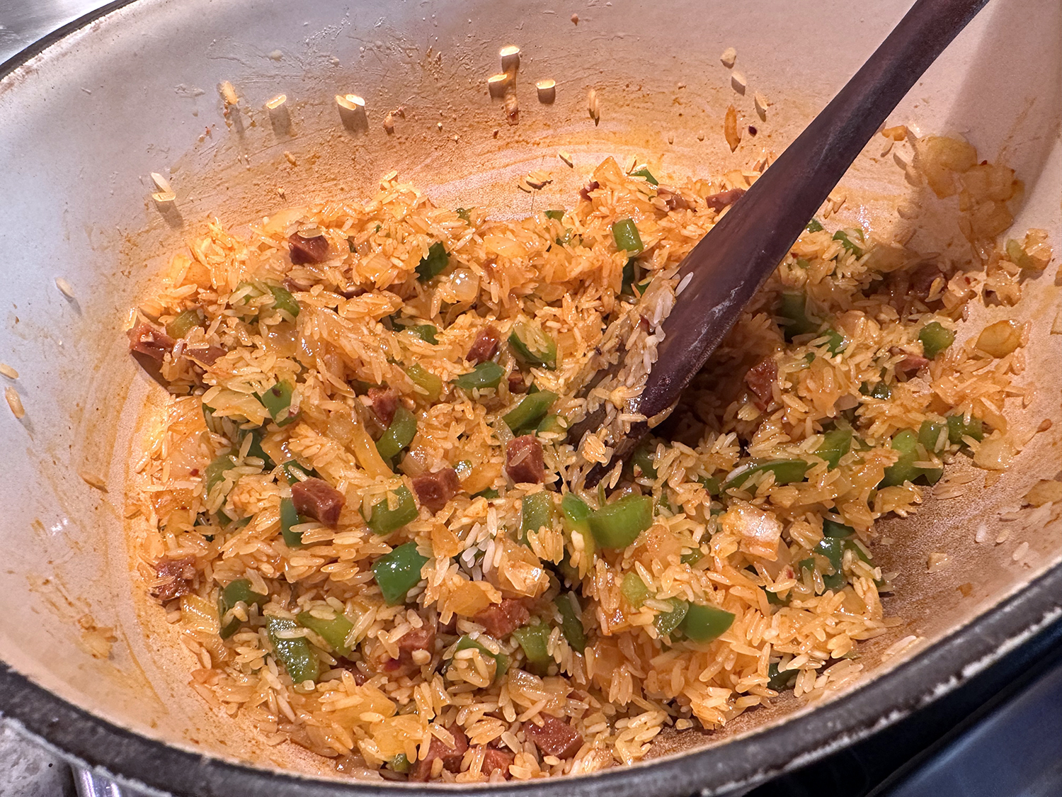 Typically, we would incorporate our homemade chicken stock, but we were completely out, so we used a boxed brand. Then it hit us halfway through making the dish, we should have used our homemade seafood stock!!