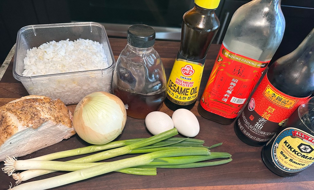 - 5 cups cooked Jasmine rice, (add 1 tsp. oil to rice when cooking)