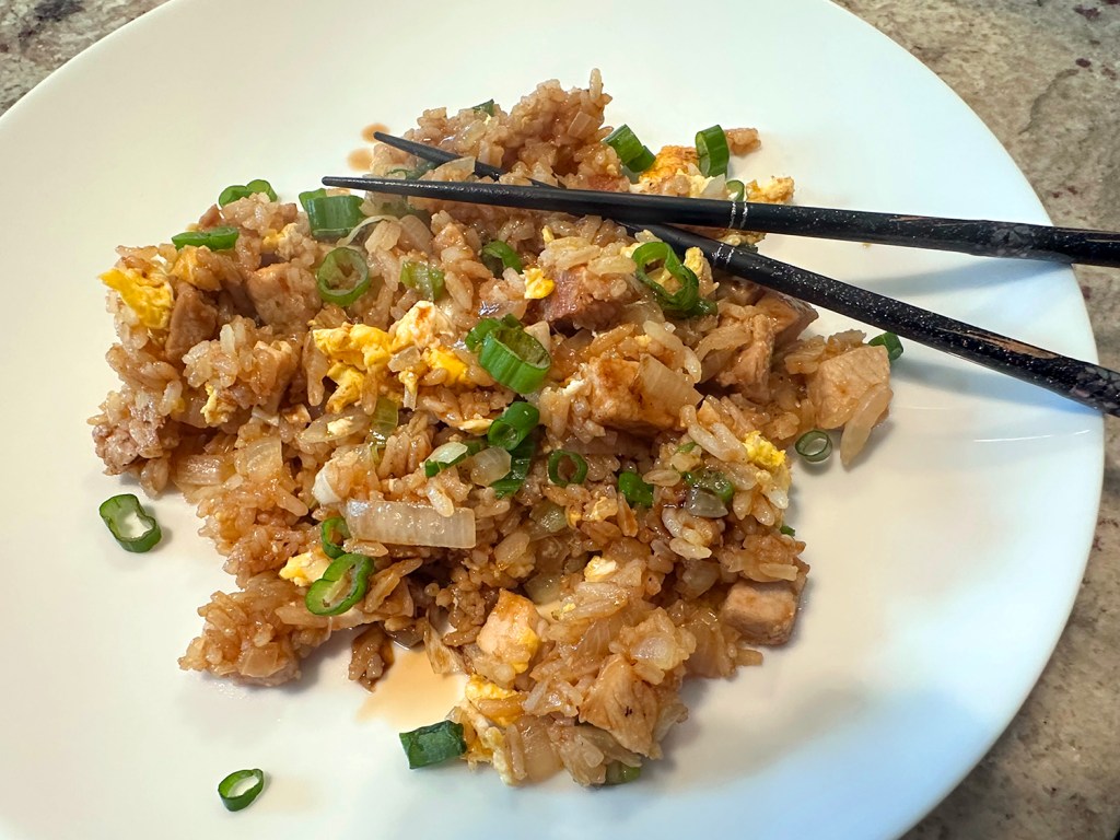 Pork Fried Rice is usually a dish we make with leftovers from a pork loin (or tenderloin) dinner. Here, we changed things up a tad by trying this restaurant-quality version from The Woks of Life. The rendition, in contrast to our typical Pork Fried Rice uses only half the amount of eggs, two versus four.