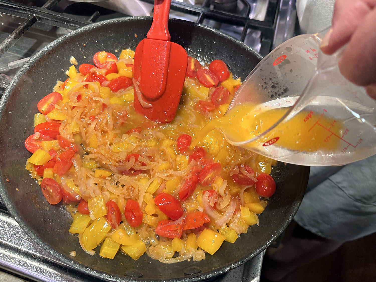 - Toss in your mung bean sprouts, scrambled eggs, and scallions. Mix thoroughly for another minute or two and serve!