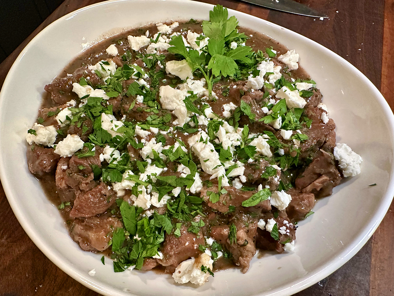 On another note, even though it was a truly delicious dish, our preference lies toward saucy when it comes to stir-fries, and this was decidedly not. So if you prefer a more saucy finish, just double the liquids (wine though vinegar).