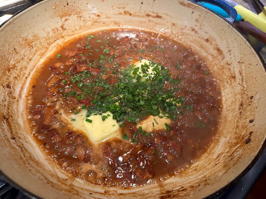 While The Hubs likes pork belly, The Missus does not, so we compromised and used a small pork loin. We had a half head of cabbage on hand weighing about 50% less than called for, so we doubled the number of scallions from 2 to 4. The recipe says it feeds 4, well the two of us almost polished it off; therefore more realistically serves 2 to 3 people.