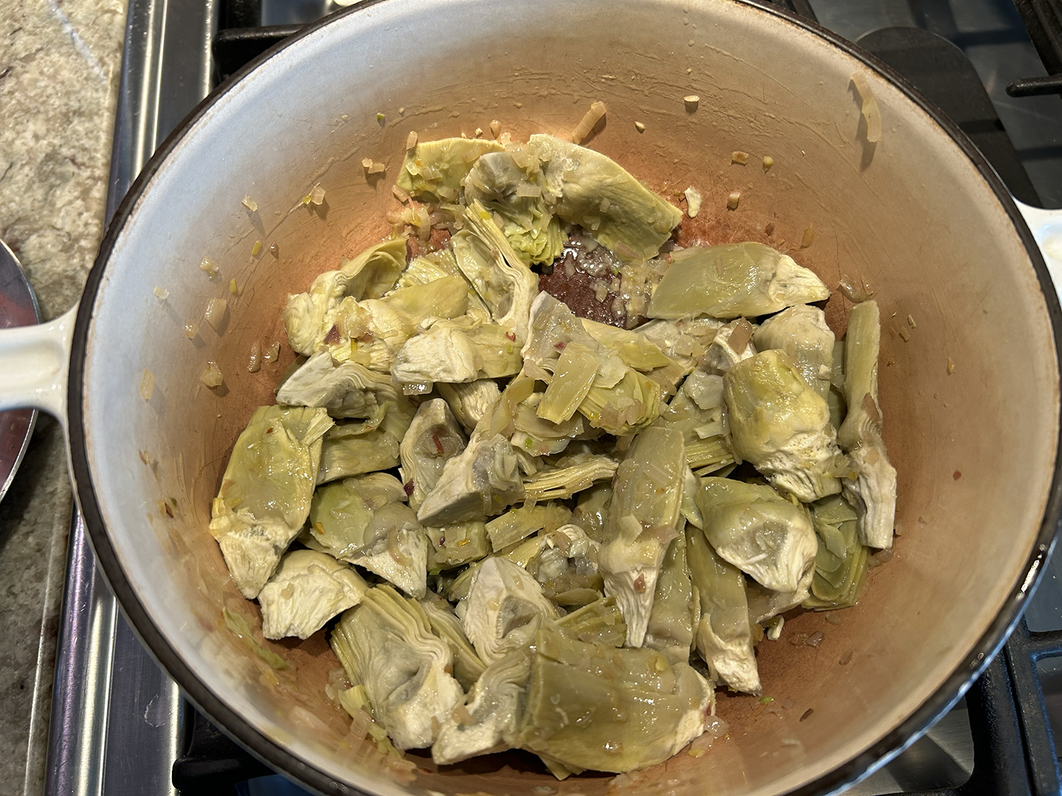 - Add the cabbage, wine, soy sauce, sugar, and water. Turn up the heat to high, cover the lid and let the cabbage cook for 1-2 minutes.