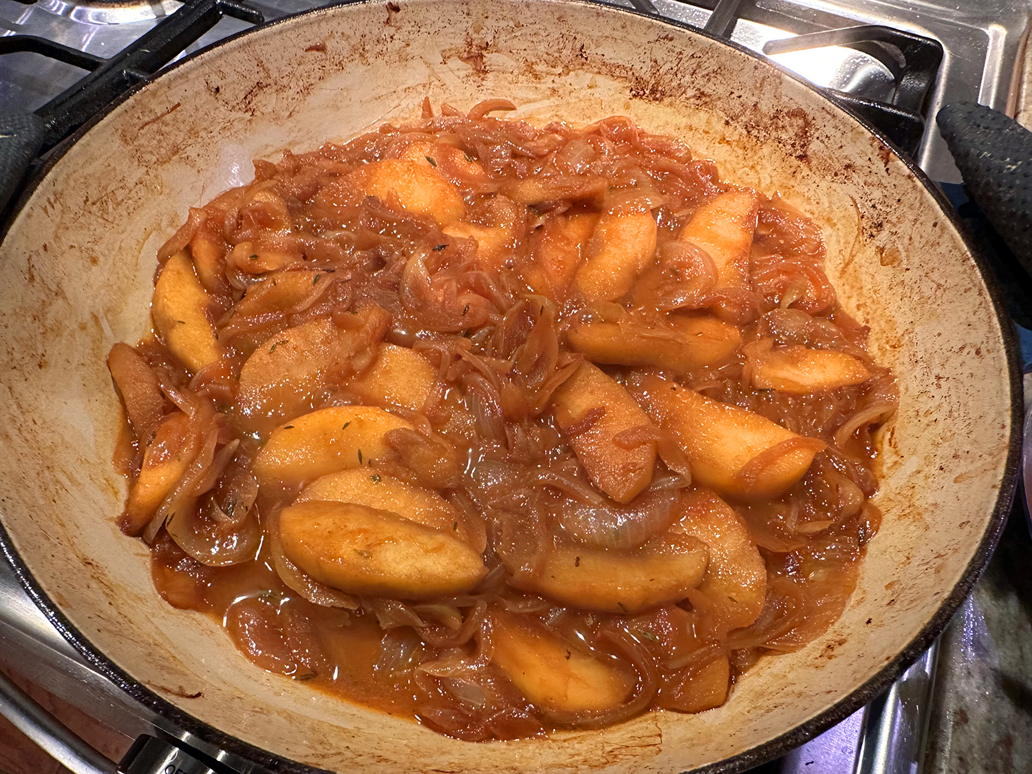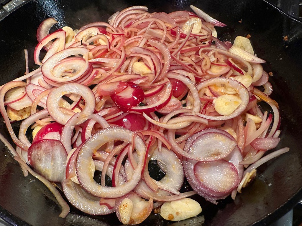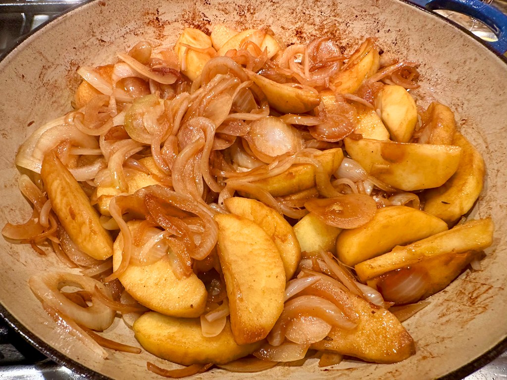 - 1 1/2 lbs. kielbasa*, sliced lengthwise and cut into 1/4″ half moons