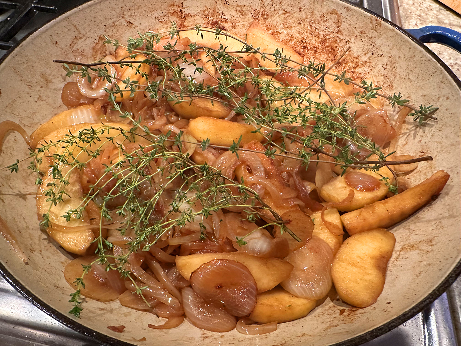 - 1 Tbsp. fresh thyme, stripped off stem or tied in a bundle