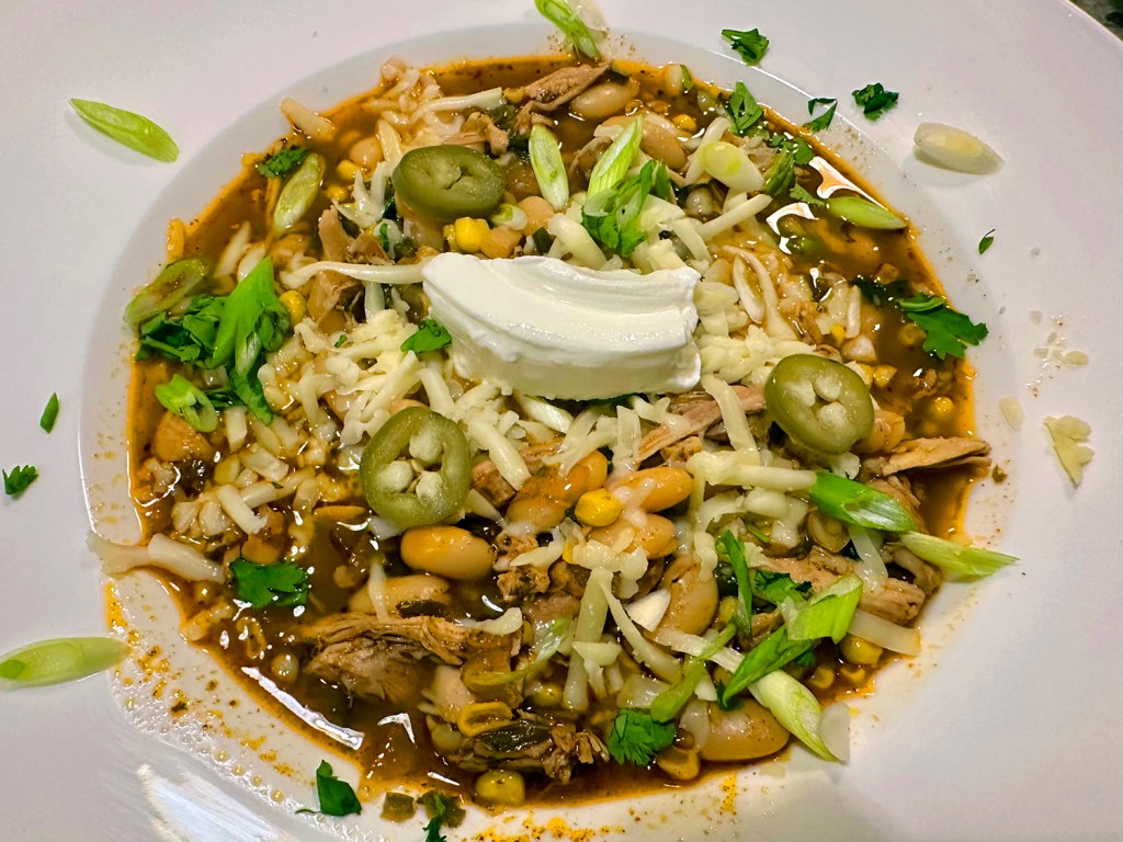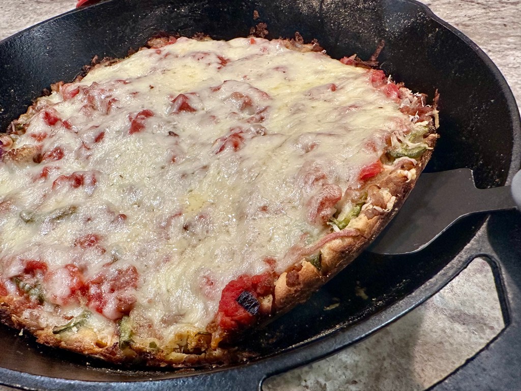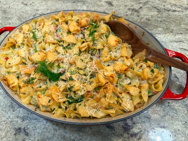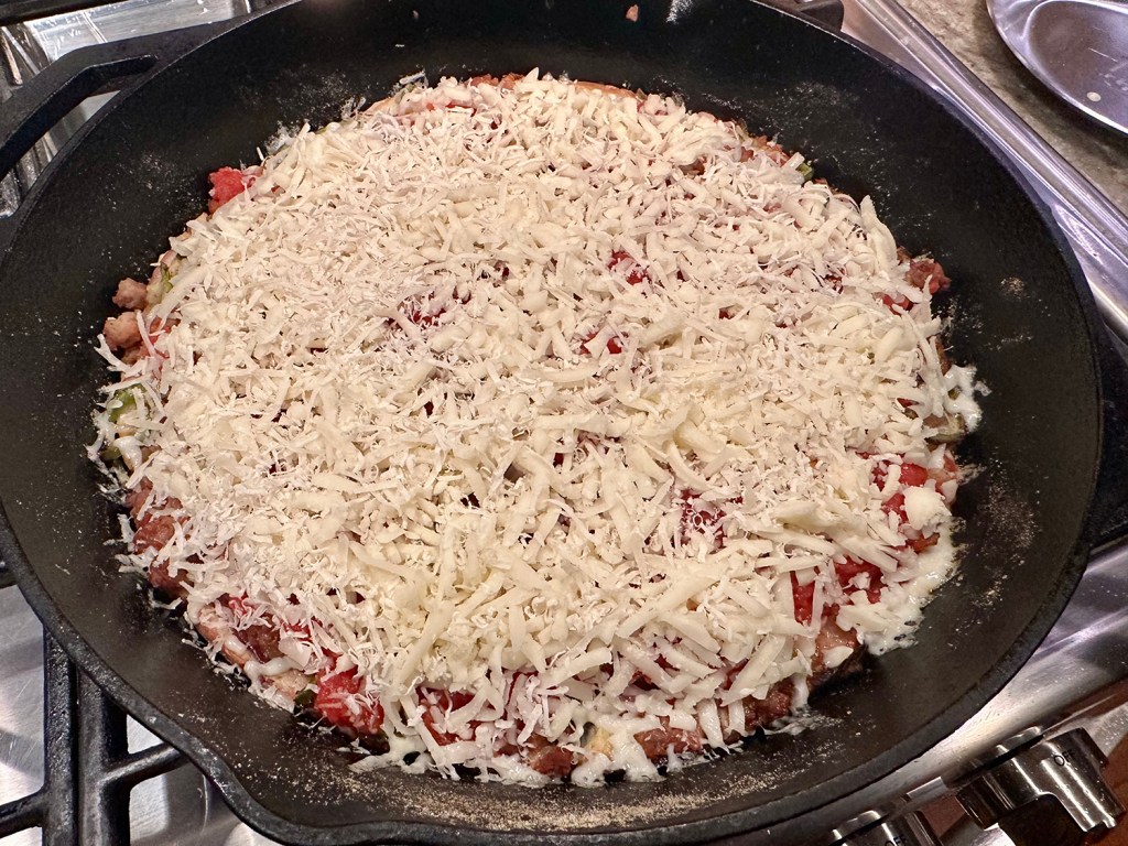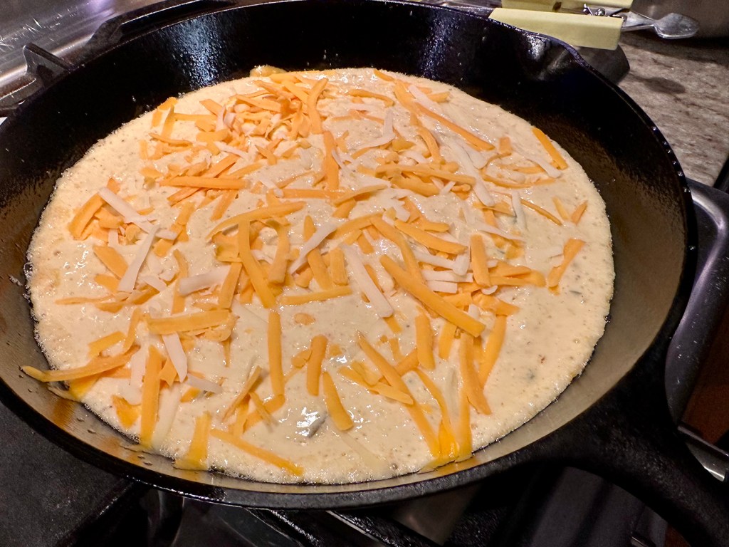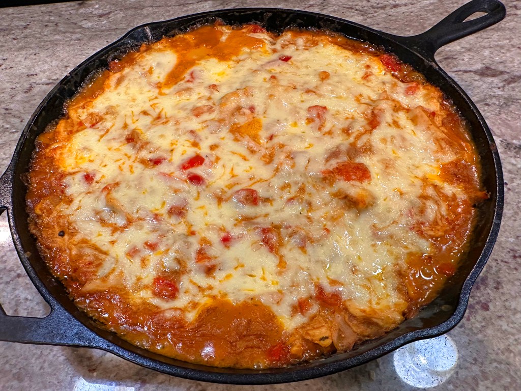 Our changes? We had a frozen packet of chicken thighs that weighed in at 2 1/4 pounds, more than the recipe called for. That fact, plus only 4 ounces of bell pepper just seemed too paltry so we tripled that amount, doubled the scallions, and replaced the water with chicken stock. With all of the “extra” ingredients, we decided to double the sauce ingredients too. Then, at the end, the sauce didn’t seem thick enough so we mixed in a small cornstarch slurry.