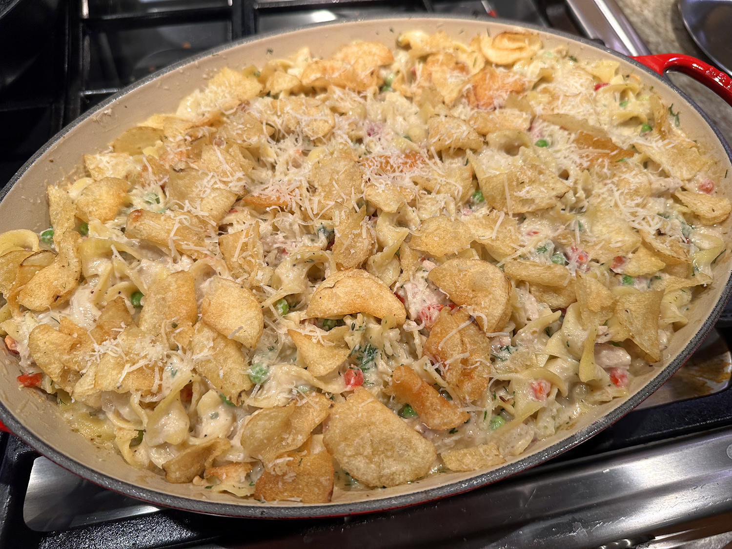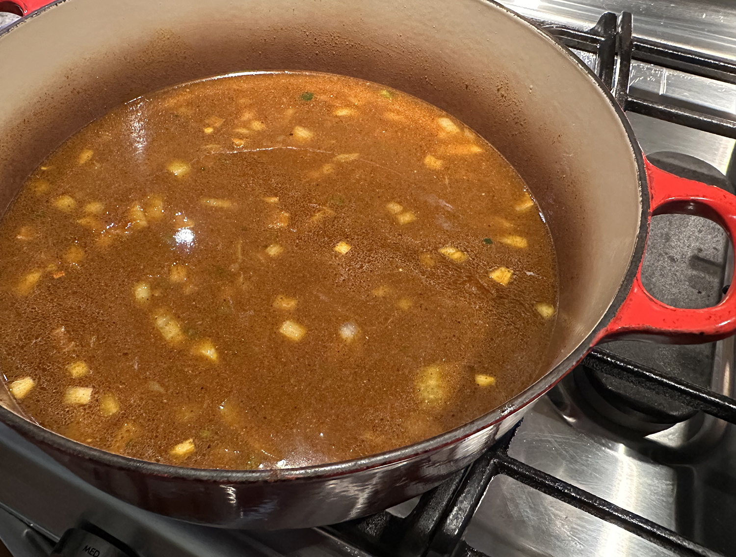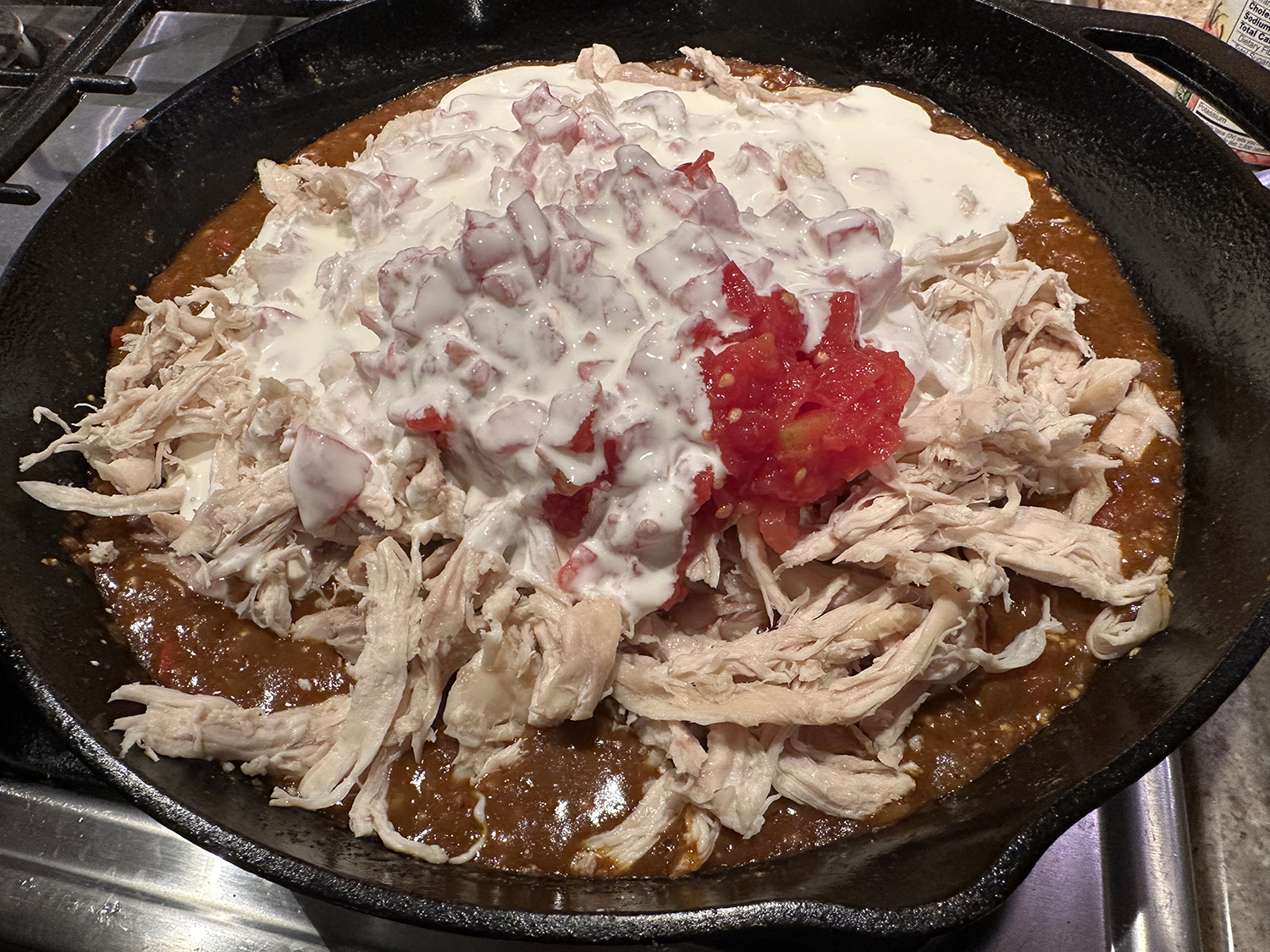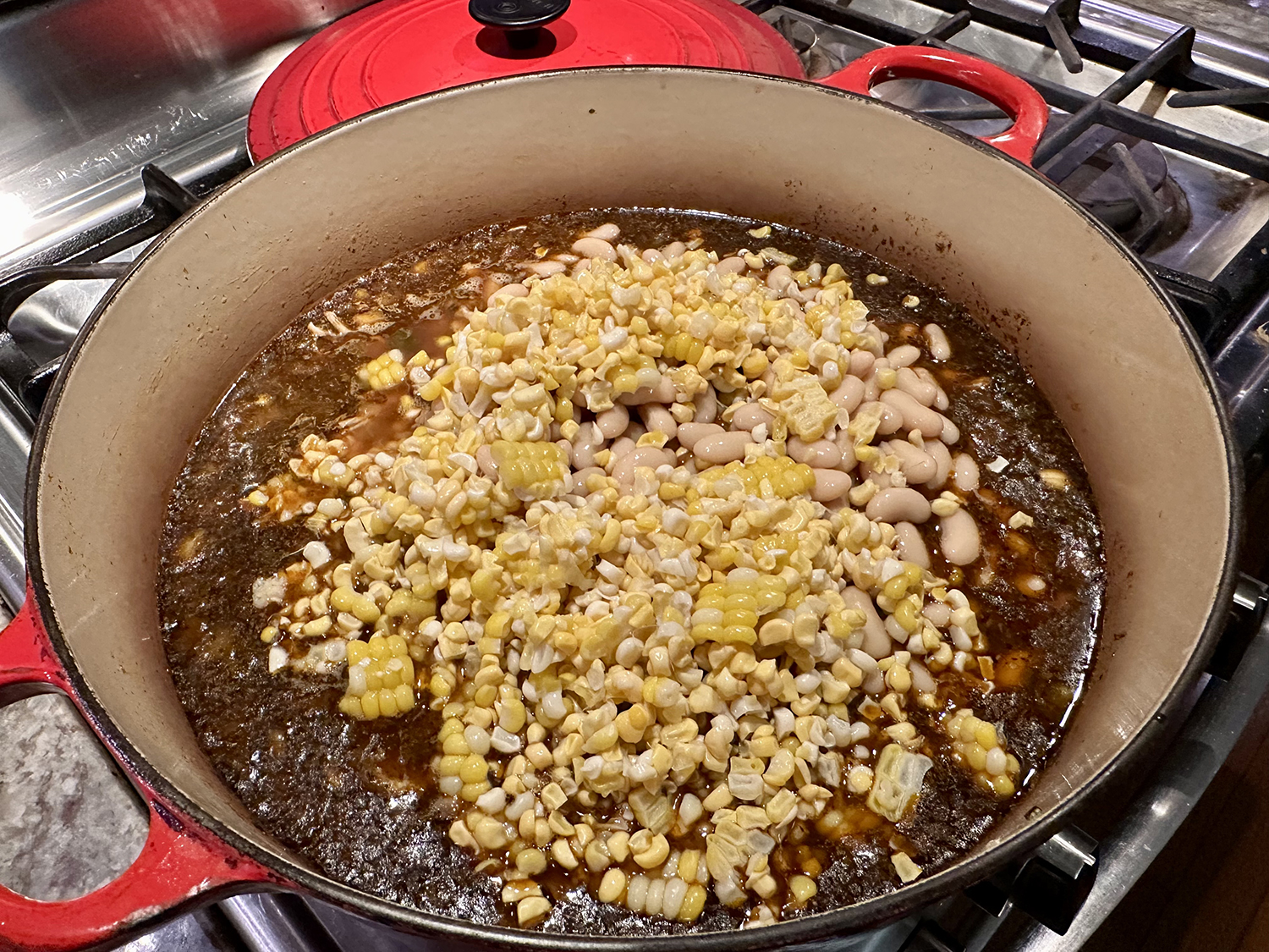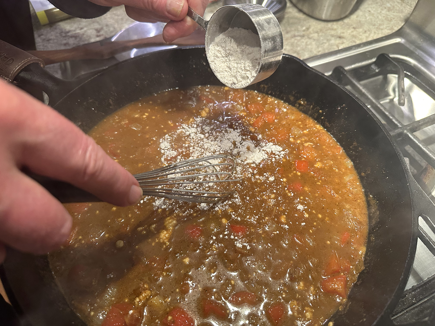 Our changes? We had a frozen packet of chicken thighs that weighed in at 2 1/4 pounds, more than the recipe called for. That fact, plus only 4 ounces of bell pepper just seemed too paltry so we tripled that amount, doubled the scallions, and replaced the water with chicken stock. With all of the “extra” ingredients, we decided to double the sauce ingredients too. Then, at the end, the sauce didn’t seem thick enough so we mixed in a small cornstarch slurry.