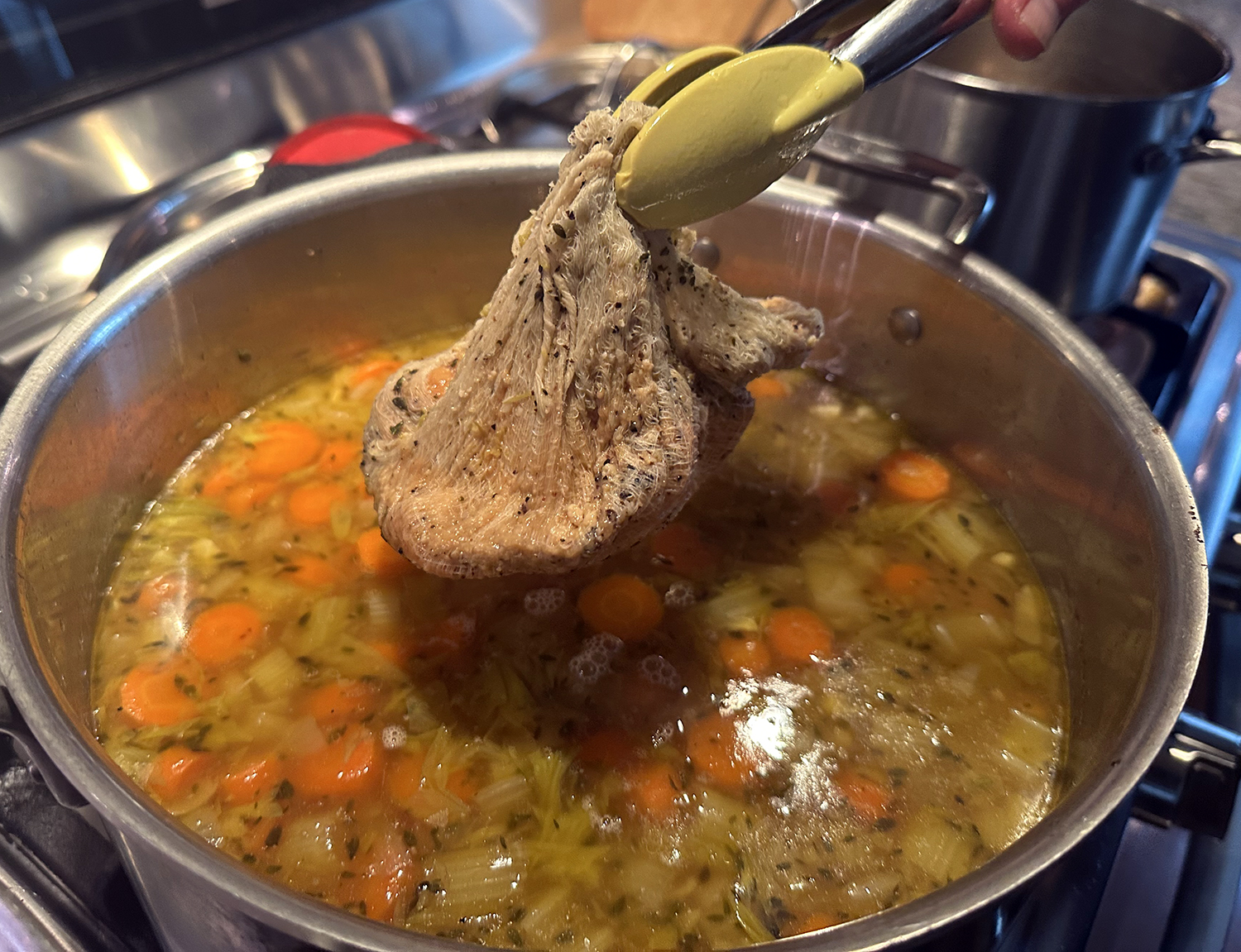 - Stir mushrooms, 2/3 cup chicken stock, Shaoxing wine, soy sauce, dark soy sauce, and sugar into wok. Bring to a boil over high. Reduce heat to medium; cover and simmer vigorously, undisturbed, until a thermometer inserted in the thickest piece of chicken registers 165°F, 5 to 8 minutes.