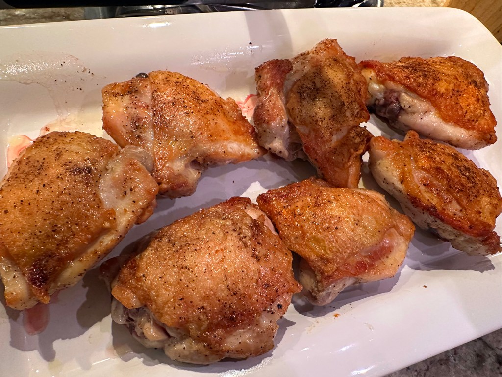• 2 1/2 lbs. bone-in, skin-on chicken thighs (5 to 7 thighs)