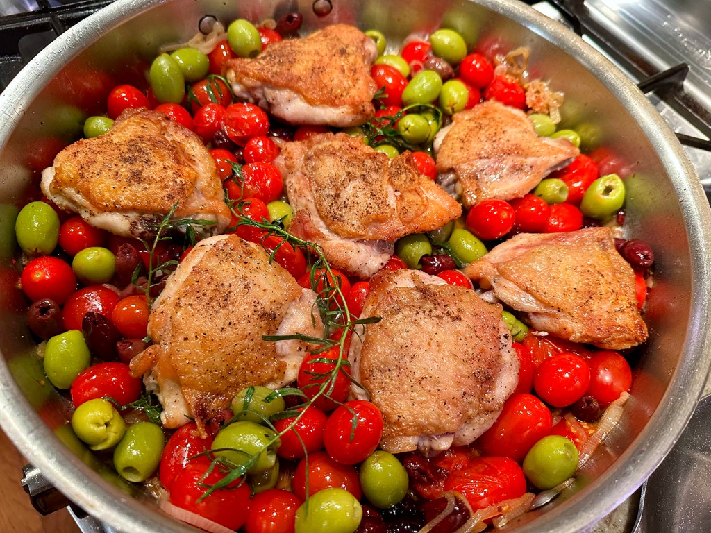 Seared Chicken Thighs with Cherry Tomatoes and Olives