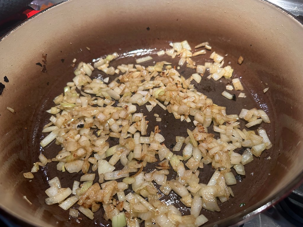 2. 02To the fat remaining in the pot, add the pancetta, onion, carrots and celery. Cover and cook over medium-low, stirring occasionally, until the pancetta is beginning to brown and the vegetables are softened, 18 to 20 minutes.
