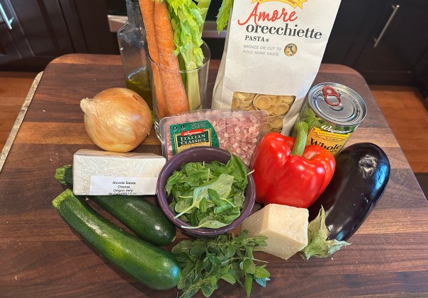 Pasta alla pecorara, known as “shepherd’s style pasta,” gets its name from its use of sheep’s milk cheese and local vegetables. Milk Street was inspired by Abruzzese home cook Luisa Carinci, who enhanced her version with pancetta. The sauce is seasoned with marjoram, which grows abundantly in the region and tastes like a sweeter, more delicate oregano. If you can’t find it, fresh oregano works fine. We used a combo of both fresh from our herb garden.