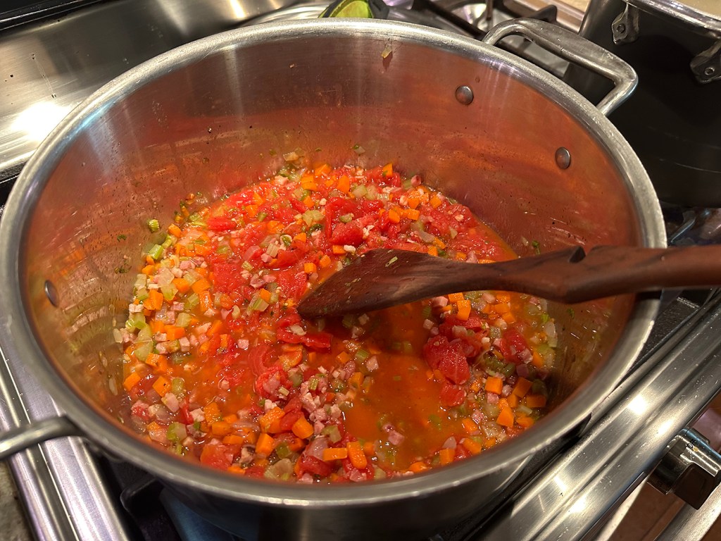 Don’t rush the cooking of the pancetta and aromatics. Keeping the pot covered and the heat on medium-low will give the pancetta time to render its fat and for the aromatics to relinquish their flavor and become meltingly soft.
