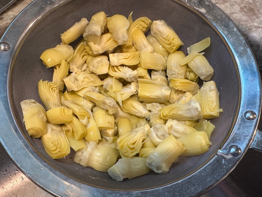 • 2 14-oz. cans artichoke hearts, drained, cut into quarters if whole