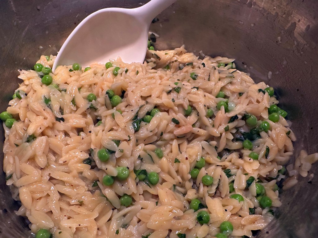 This Milk Street recipe is the delicious marriage of orzo pasta and fettuccine Alfredo. The orzo is cooked like rice, as if making risotto, so the starches create a creamy, silky sauce. Butter and Parmesan join the mix as a nod to Alfredo, and sweet peas add color and sweetness.