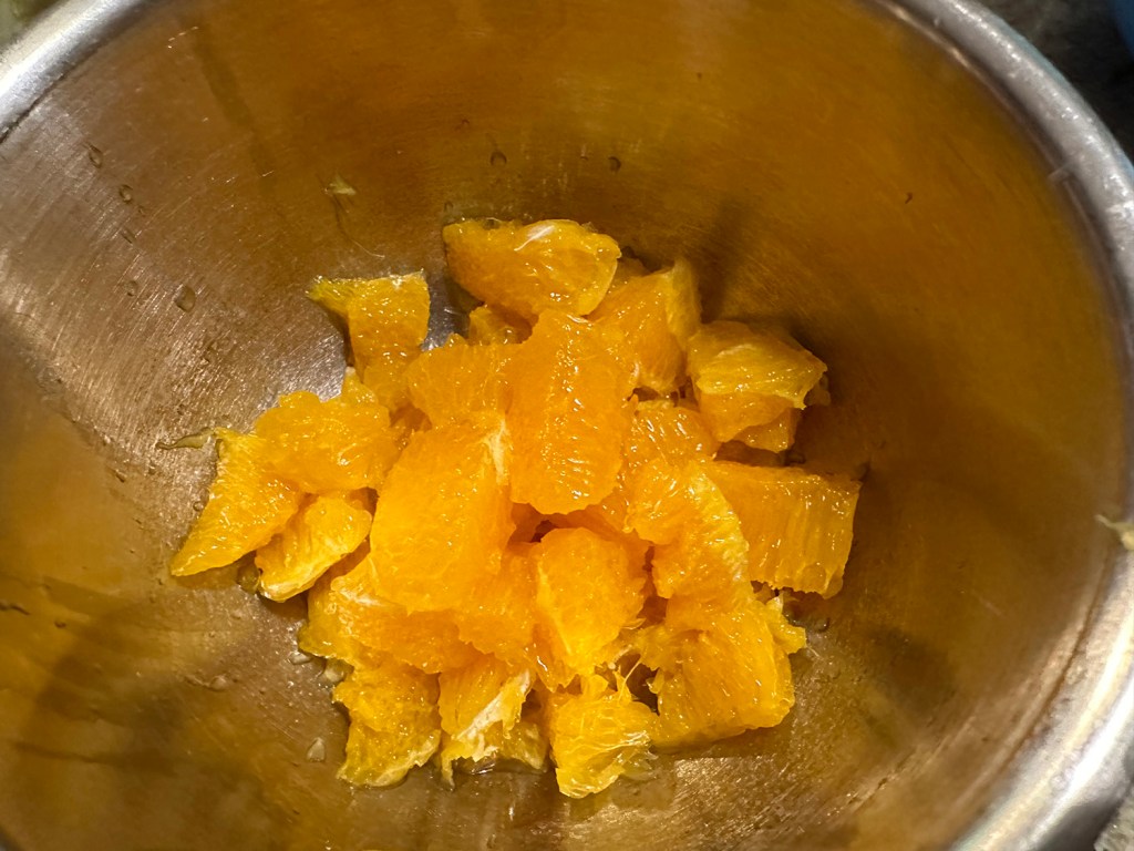 5. While fennel cooks, add 2 teaspoons fennel fronds, vinegar, cornstarch, honey, and remaining 5 teaspoons oil to reserved orange juice and whisk to combine.
