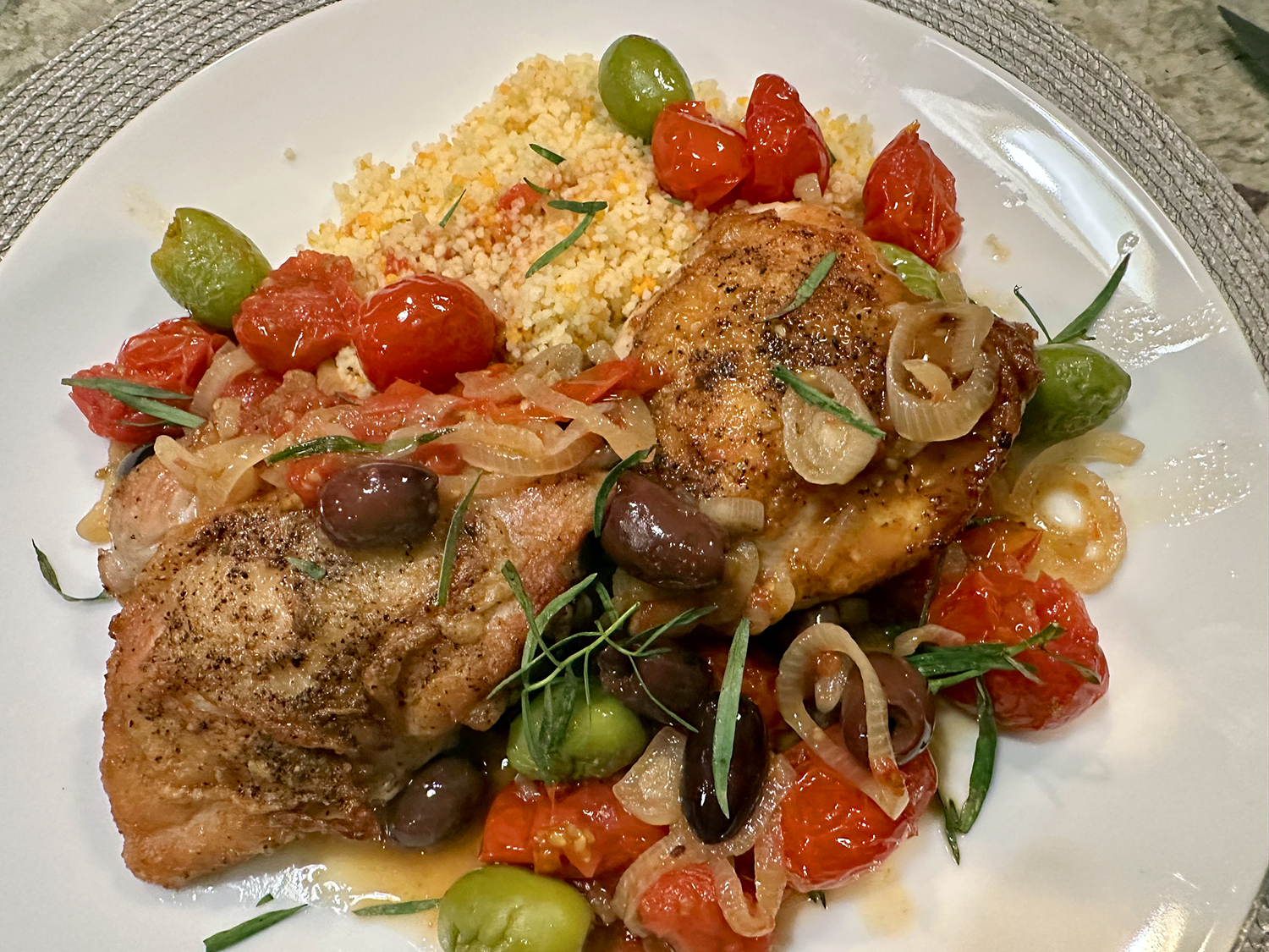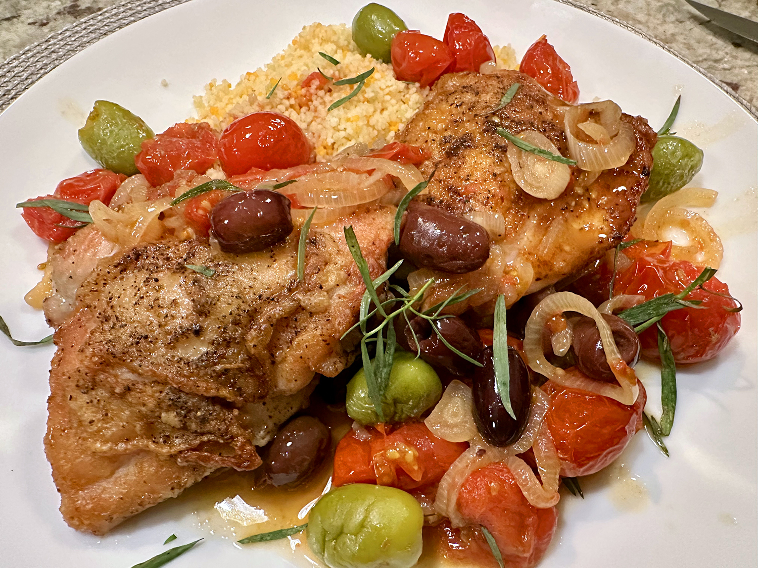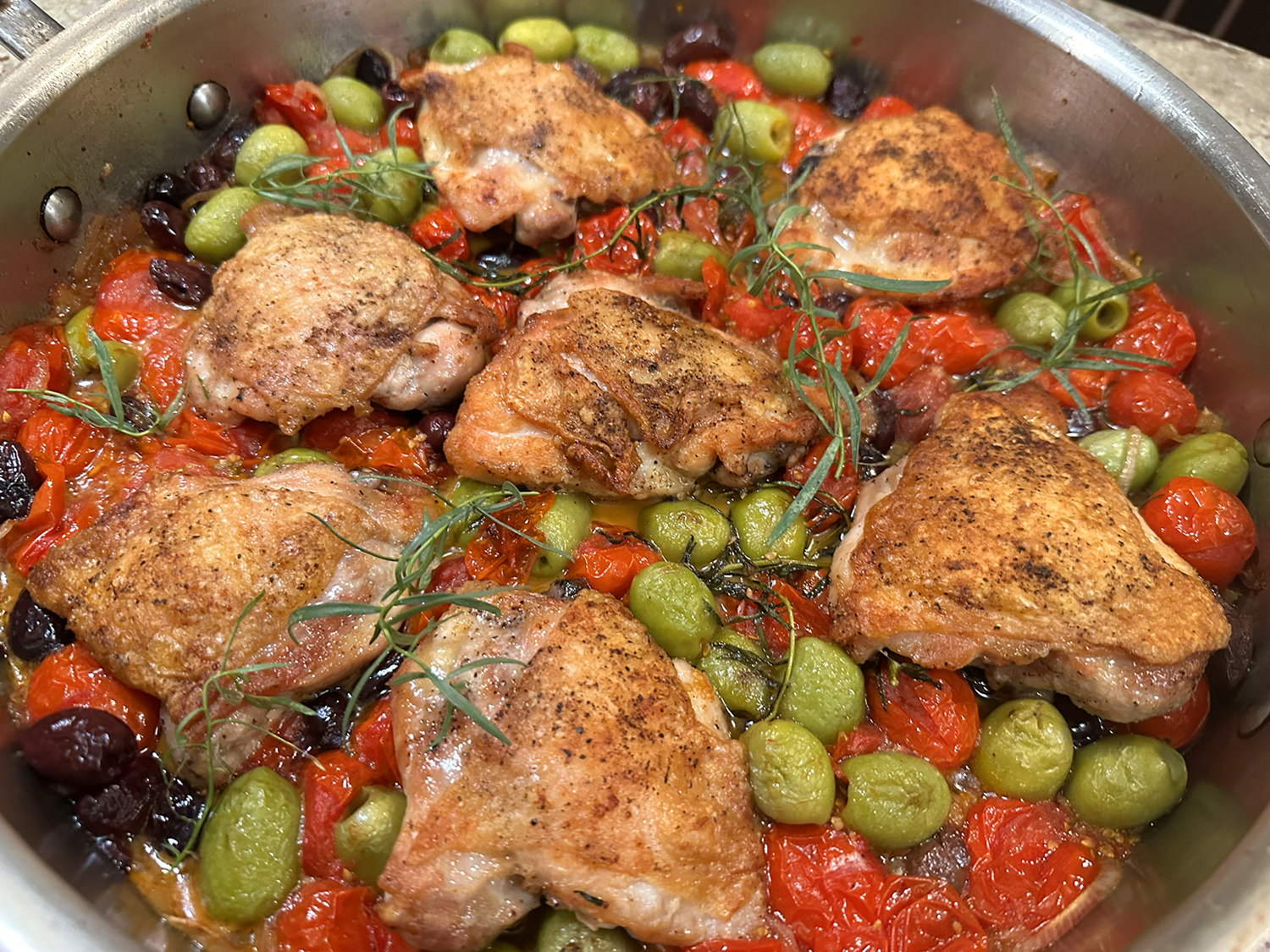 Seared Chicken Thighs with Cherry Tomatoes and Olives