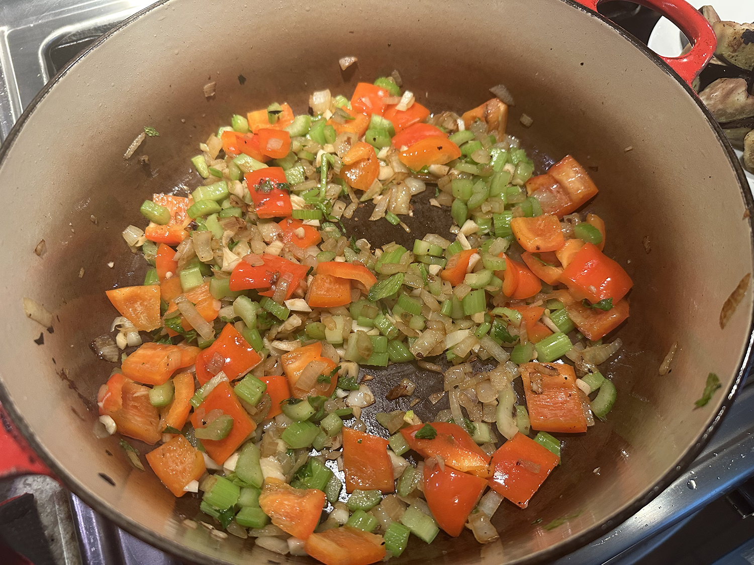 • 1 medium red bell pepper, stemmed, seeded and cut into ½-inch pieces