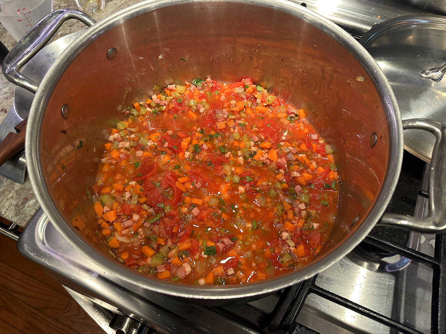 Don’t rush the cooking of the pancetta and aromatics. Keeping the pot covered and the heat on medium-low will give the pancetta time to render its fat and for the aromatics to relinquish their flavor and become meltingly soft.