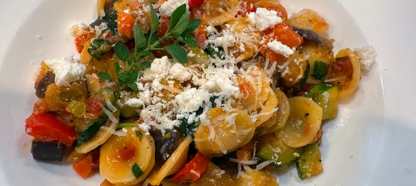 Pasta alla pecorara, known as “shepherd’s style pasta,” gets its name from its use of sheep’s milk cheese and local vegetables. Milk Street was inspired by Abruzzese home cook Luisa Carinci, who enhanced her version with pancetta. The sauce is seasoned with marjoram, which grows abundantly in the region and tastes like a sweeter, more delicate oregano. If you can’t find it, fresh oregano works fine. We used a combo of both fresh from our herb garden.
