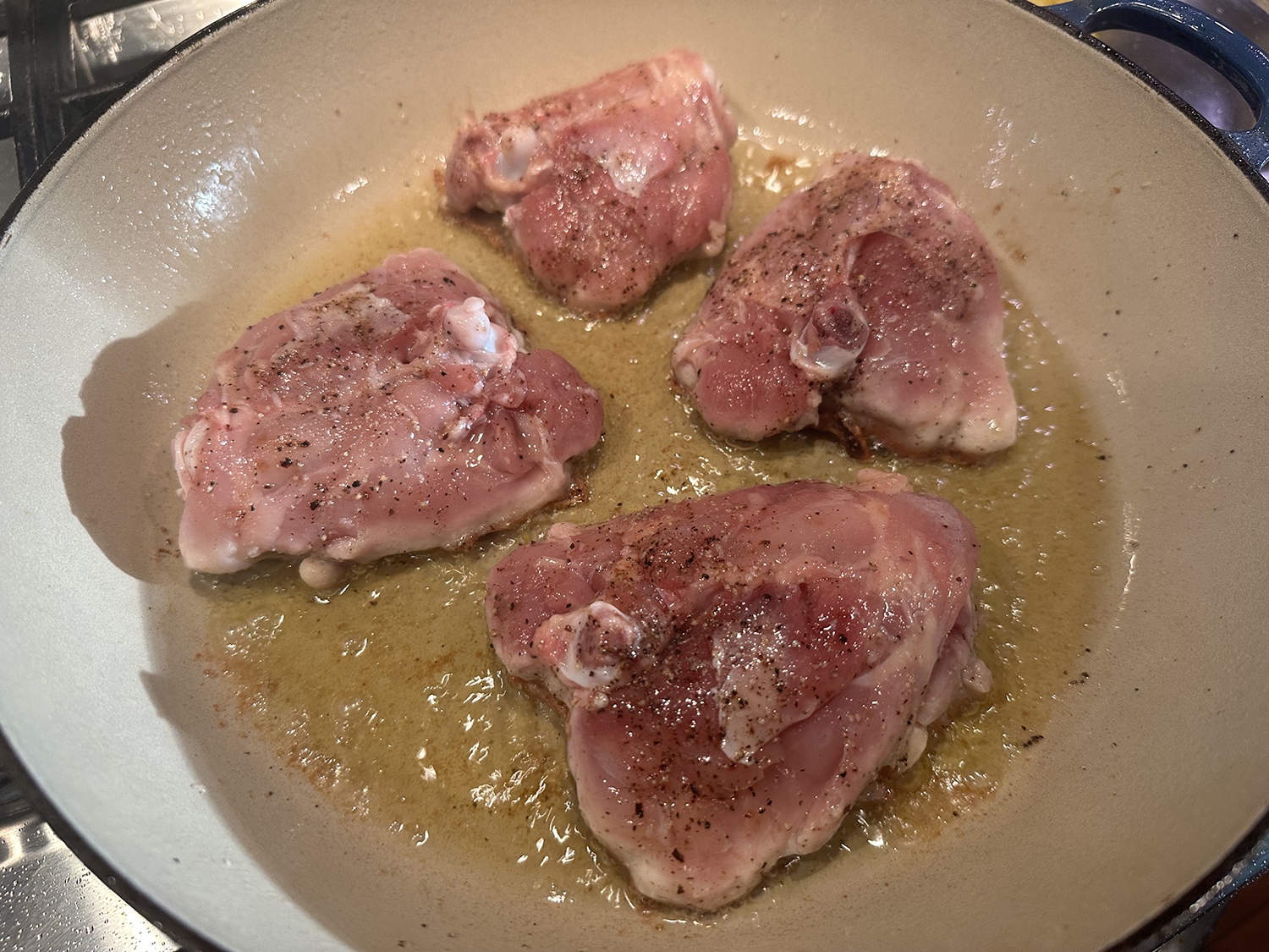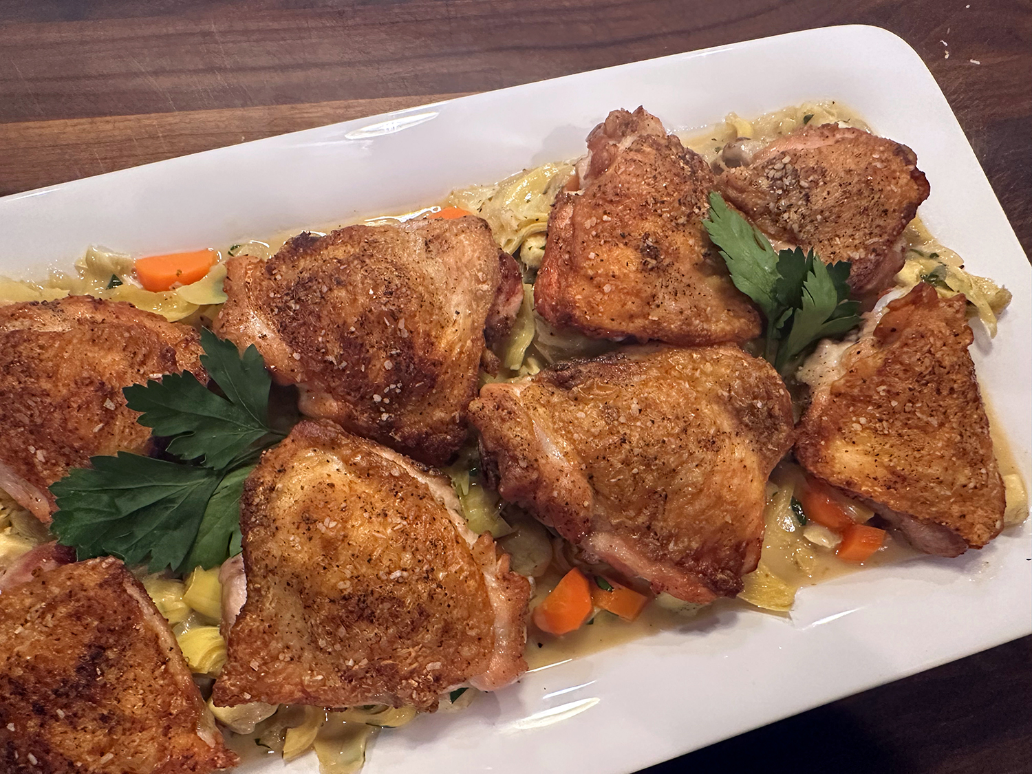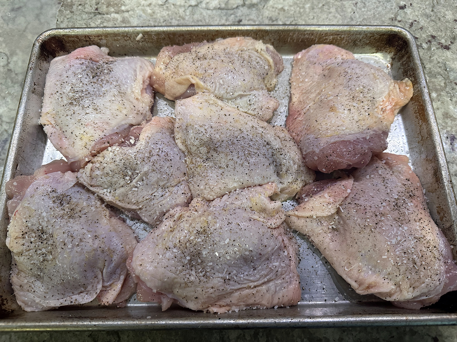 • 2 1/2 lbs. bone-in, skin-on chicken thighs (5 to 7 thighs)