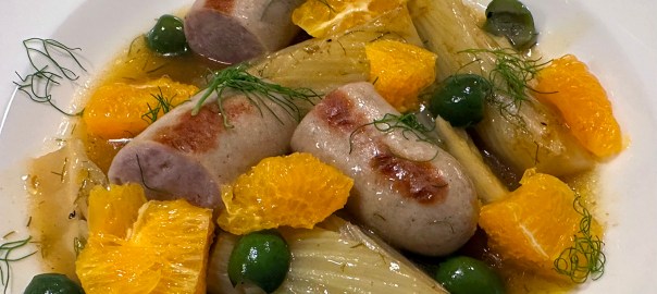 One-Pan Bratwurst with Fennel, Olives, and Oranges