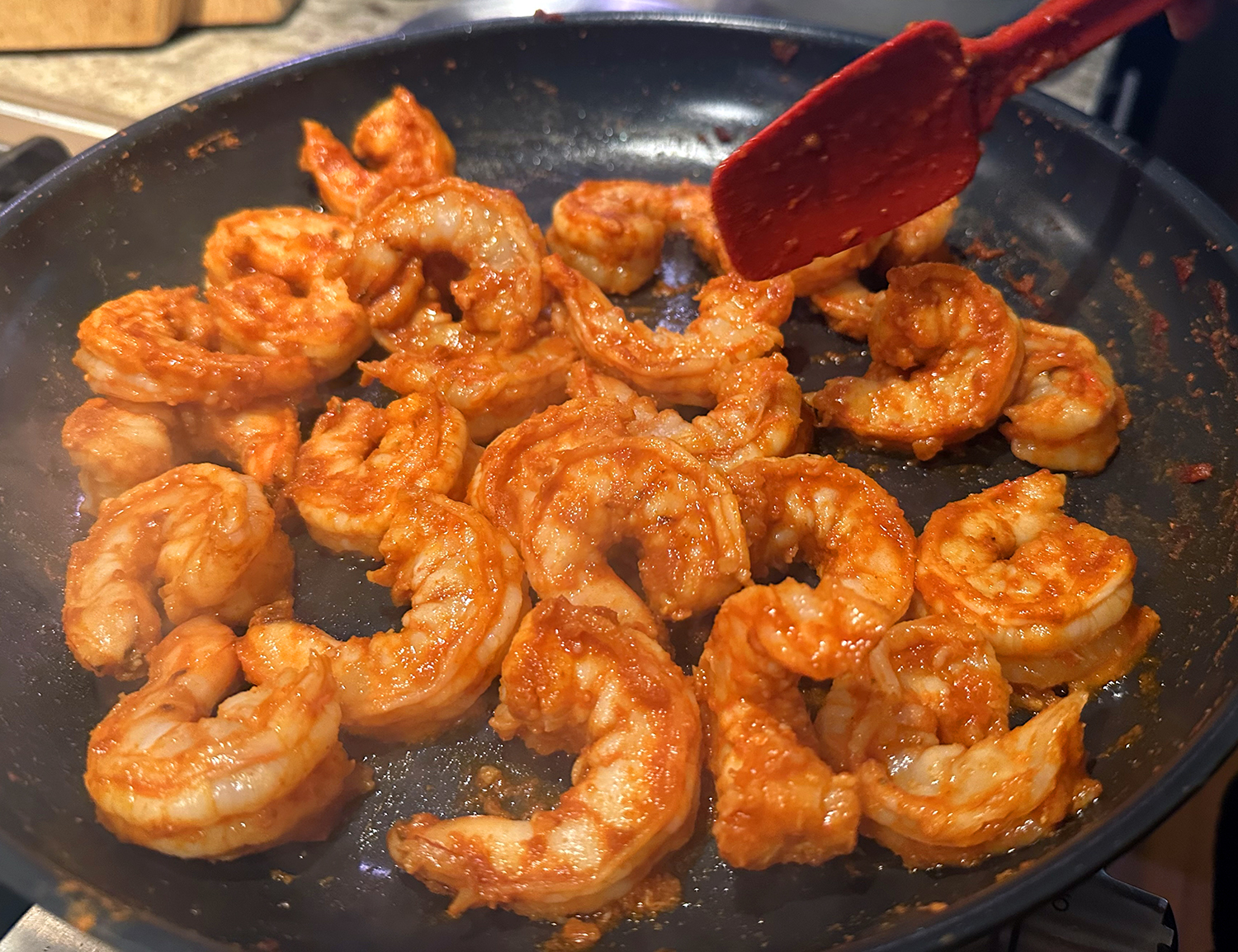 TIP: We typically buy shrimp with their heads on (this time we did not) so that we can save them and the shells for making shellfish stock. If you intend to do the same, buy about 1/4- to 1/2-pound more in weight.