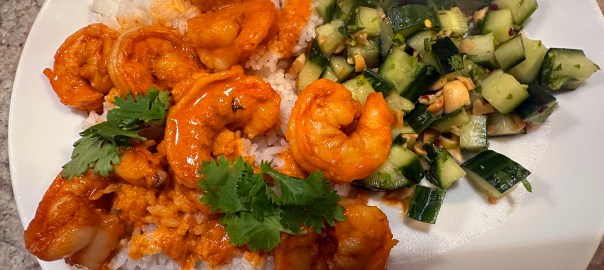 Red Curry Shrimp with Coconut Rice and Cucumber Relish