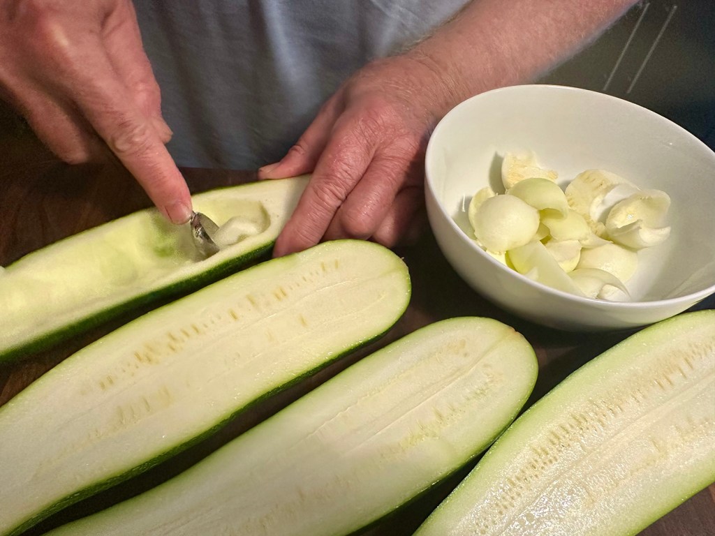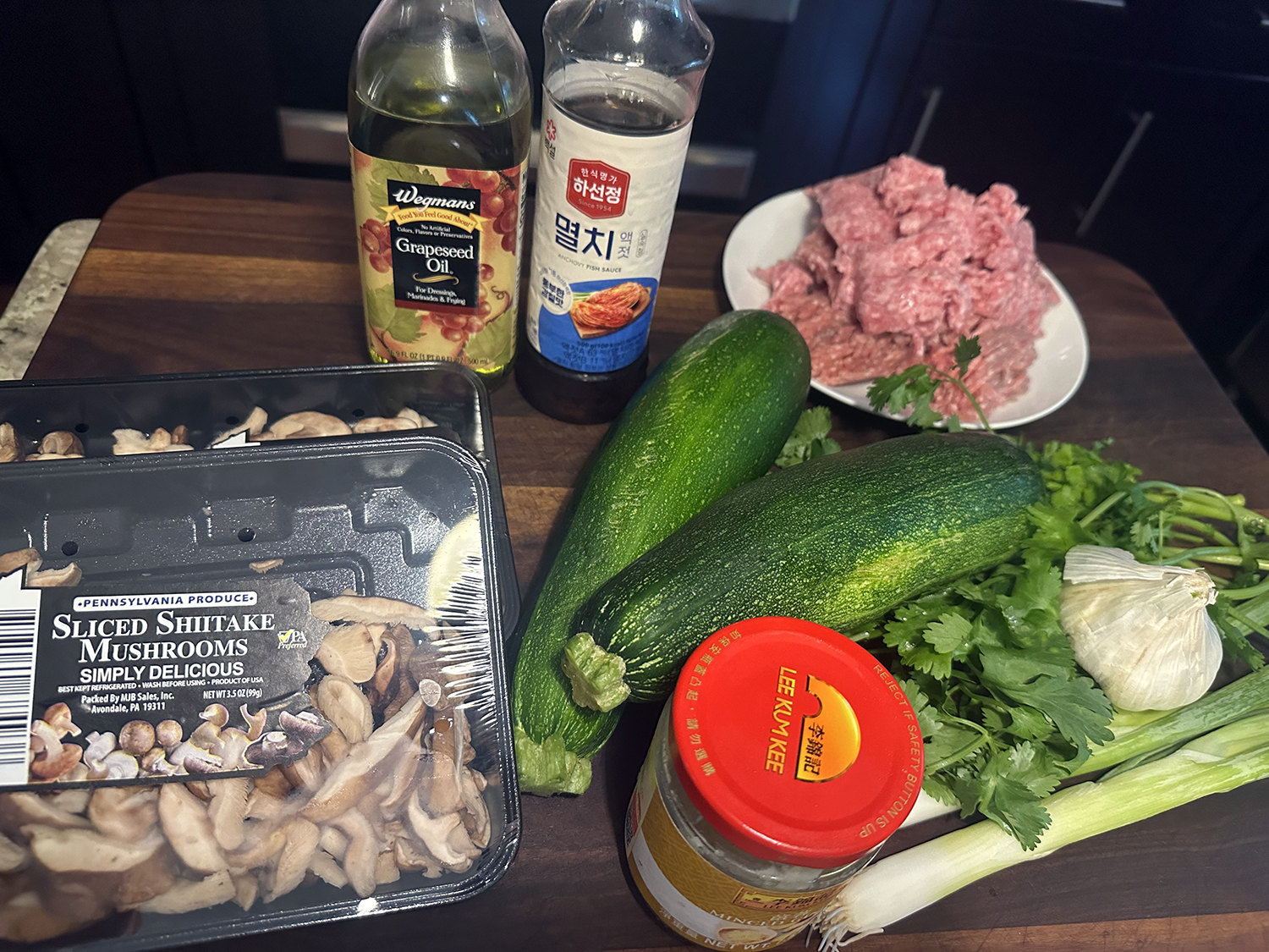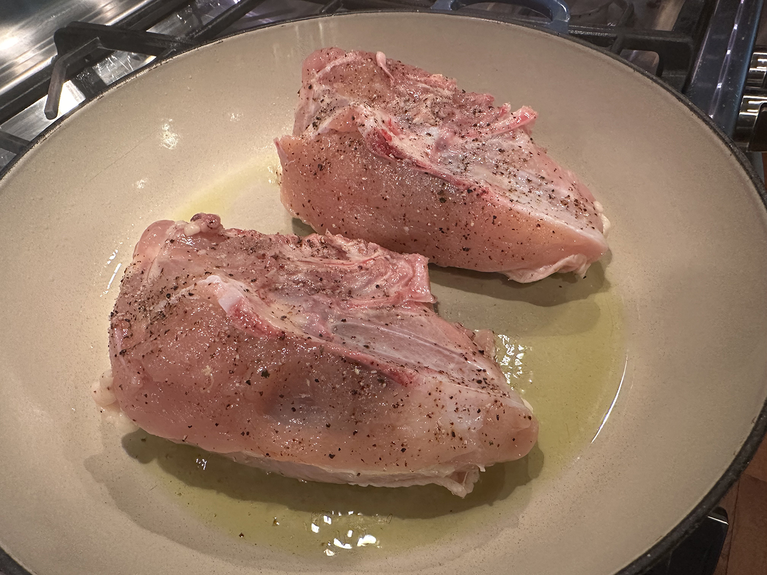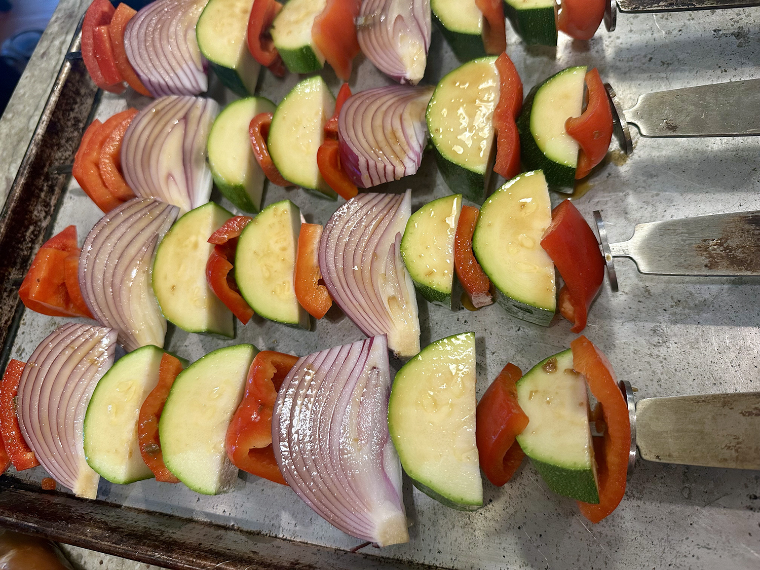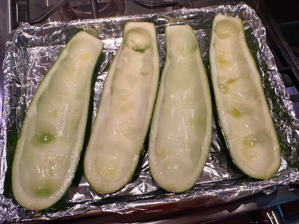 For the salmon, our only option at shopping time was to purchase two separate prepackaged filets which we then cut down into 5 equal-sized pieces. In the end, it was a bit more fish than the recipe called for, but we were more than fine with that.