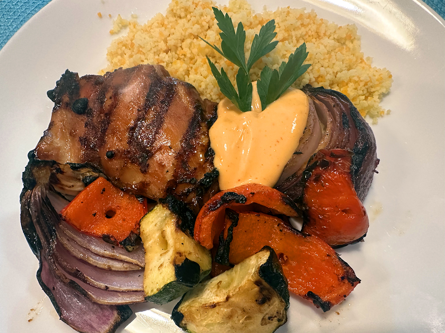As a side, we paired with tricolor couscous using homemade shellfish stock as opposed to water for a more substantial flavor.