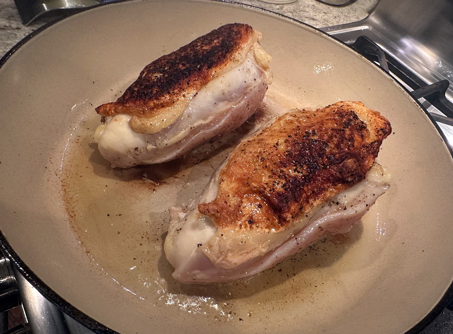 NOTE: Make sure to use a broiler-safe dish such as copper enamel. Glass baking dishes usually shatter at such high heat.