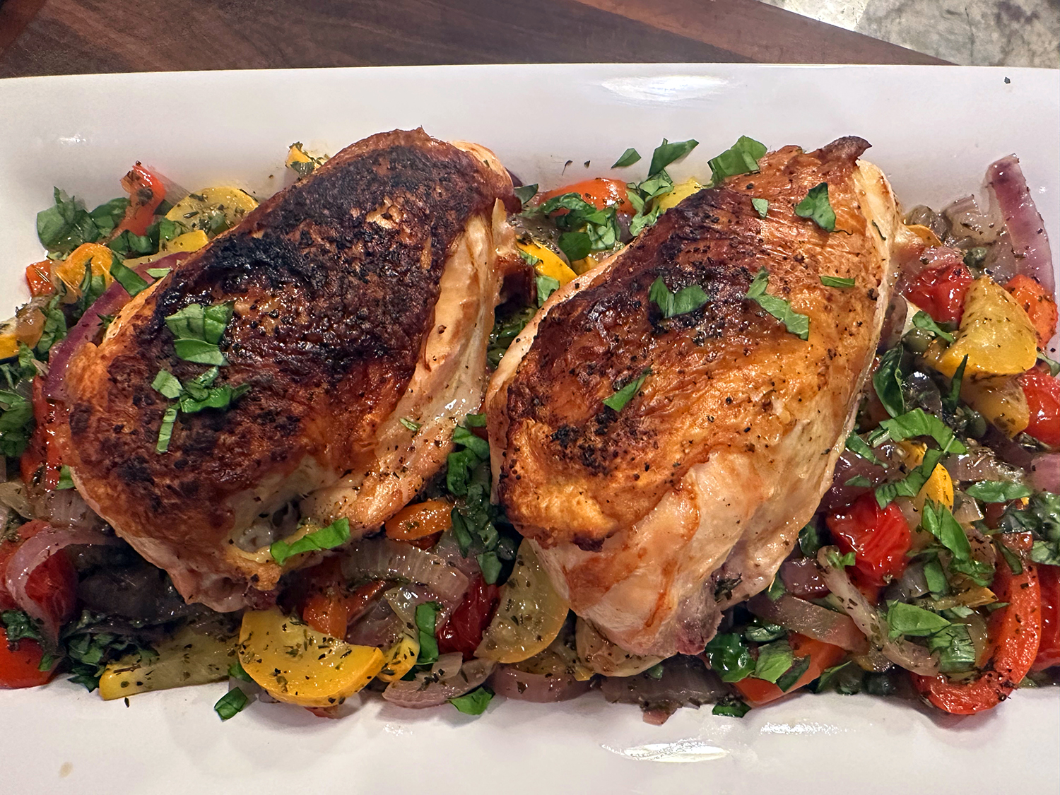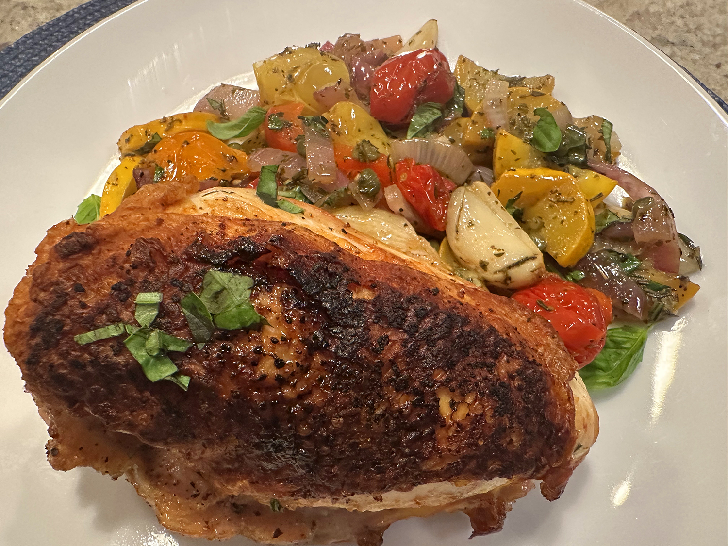 The timing was off when blistering the tomatoes, which took an additional 10 minutes on top of the 15 minutes indicated in the directions. Also, we have a gas broiler which always takes slightly longer to brown efficiently compared to an electric oven broiler.