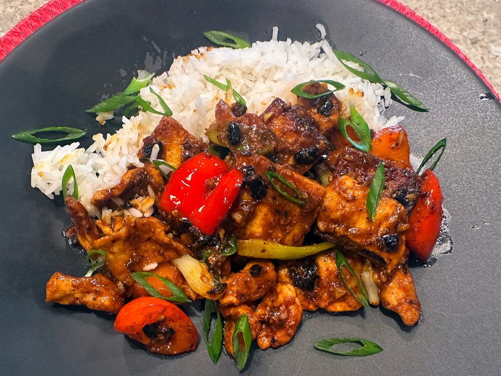 This Curried Salmon and Tomato Traybake recipe is packed with lean protein, vegetables, and healthy fats from the salmon. The salmon fillets nestled on top of a bed of roasted red onions, bursting cherry tomatoes and a curry-inspired sauce, all roasted together in a single baking dish.