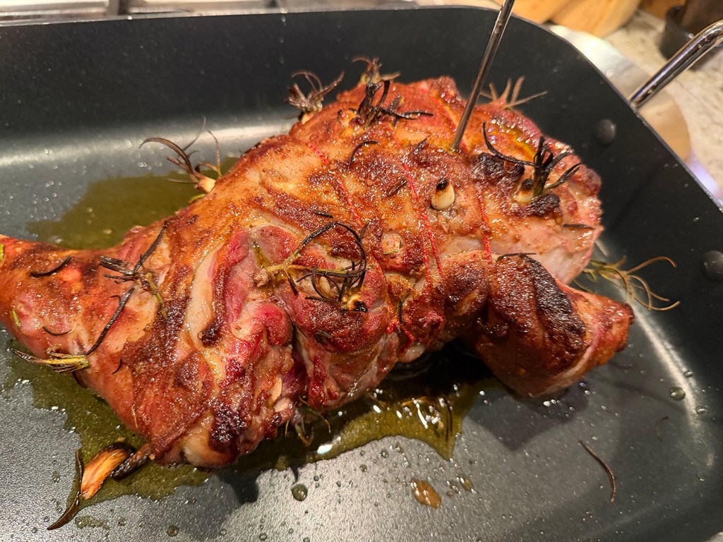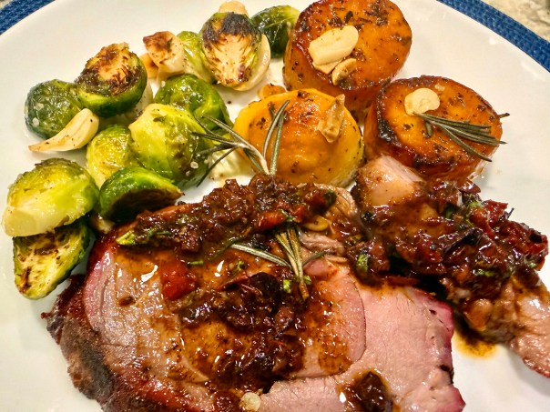 The recipe was adjusted so that more of the tomato-red pepper sauce was added on top of the loaf before baking. You will need to reheat the remaining sauce in a microwave before serving. And a word to the wise, you will be using a LOT of kitchen equipment, just sayin’…