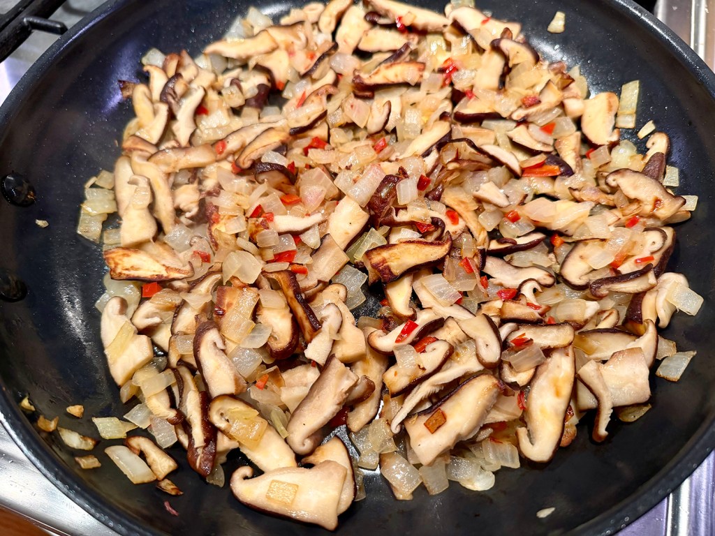 - 3 cups thinly sliced fresh shiitake mushrooms
