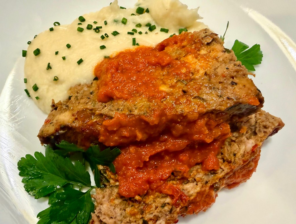 Umami Meatloaf with Red Pepper-Tomato Sauce