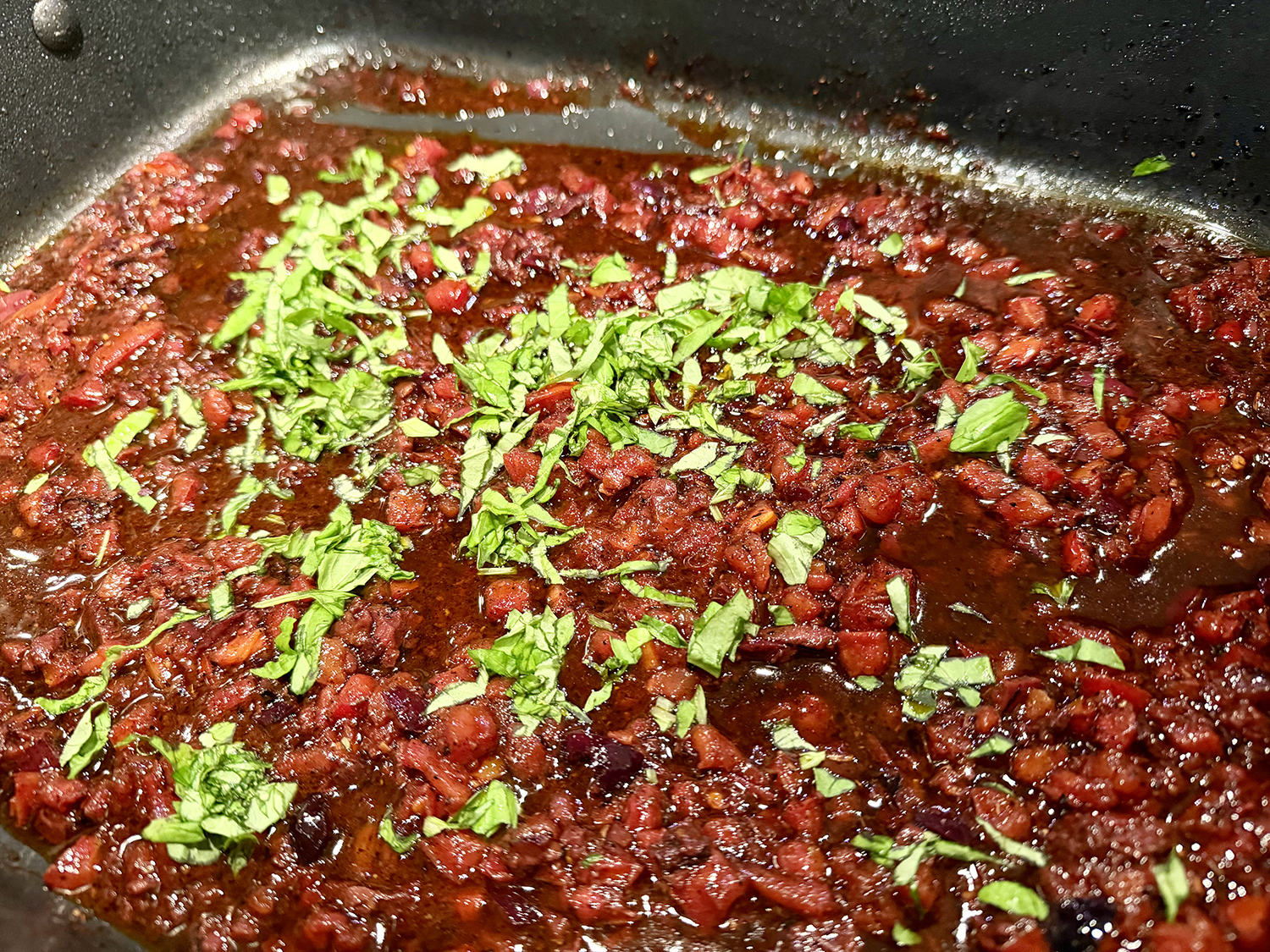 - Heat oil in a medium saucepan over medium. Add shallots; cook, stirring often, until translucent, about 3 minutes. Add tomatoes, peppers, vinegar, sugar, and salt. Cook, stirring often, until tomatoes break up, liquid evaporates, and mixture becomes a deep red paste, 25 to 30 minutes.